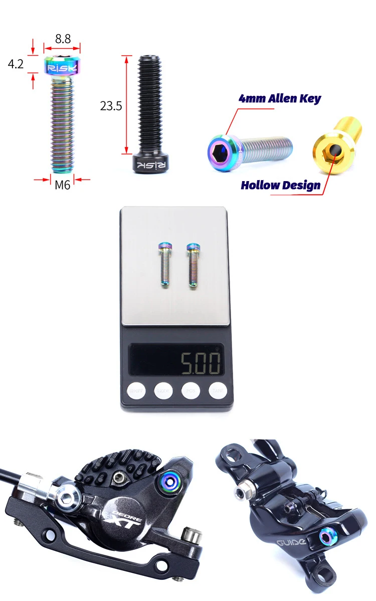 RISK титановые велосипедные тормозные винты болты суппорта для велосипеда гидравлические дисковые тормозные болты масленые Сверхлегкие MTB винты
