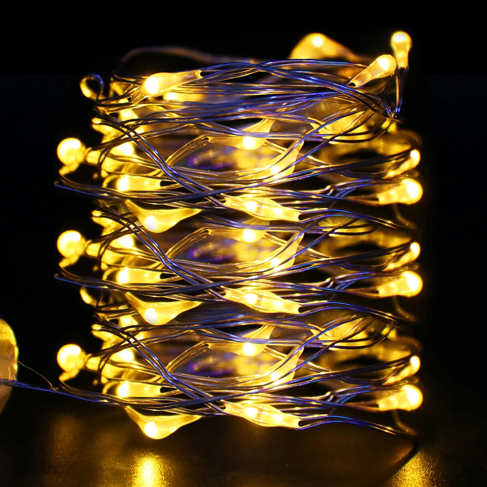 Уличная светодиодная гирлянсветильник, медная Рождественская сказосветильник лампа-лента, рождественское светильник с адаптером питания 12 В, 2 а1 А, для Великобритании, ЕС, Австралии, США, 10 м, 20 м, 30 м, 50 м