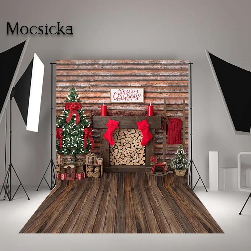Рождественский фон с деревянным полом Mocsicka, Декорации для камина, портретная фотосъемка, фон для фотостудии