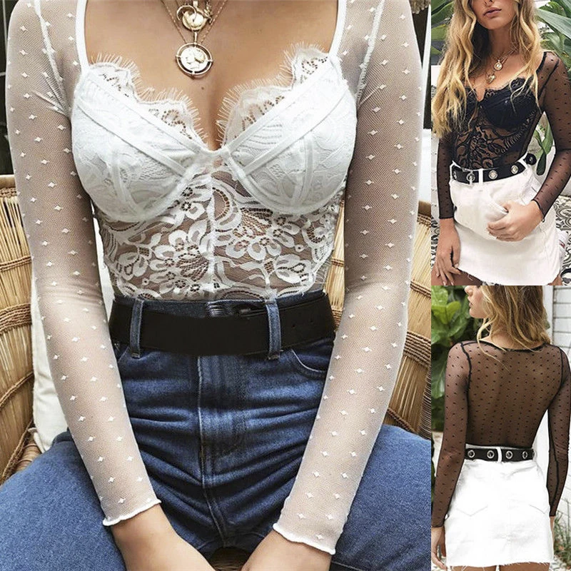 Прозрачный сетчатый кружевной комбинезон женский боди сексуальный комбинезон с длинным рукавом