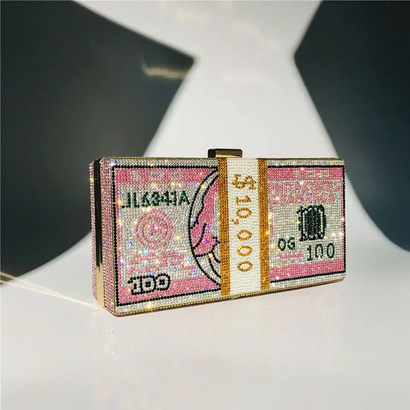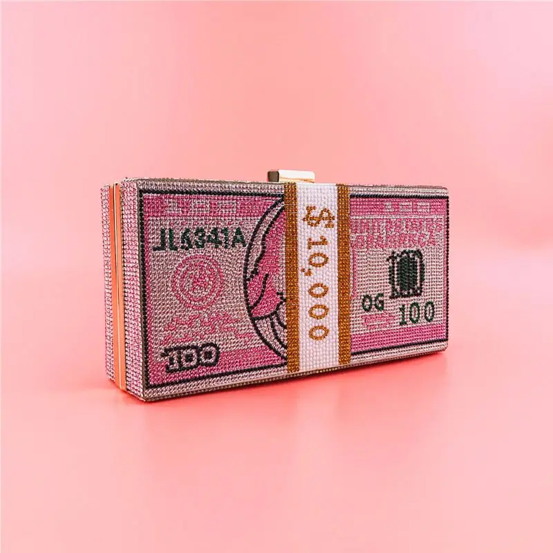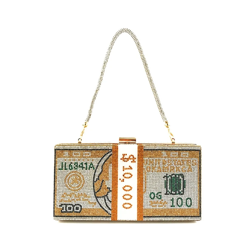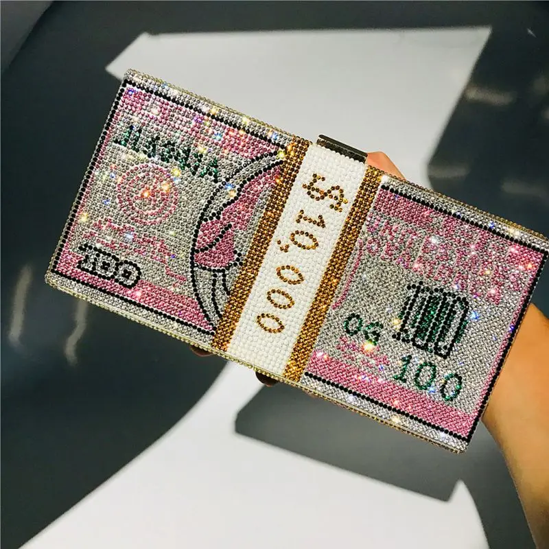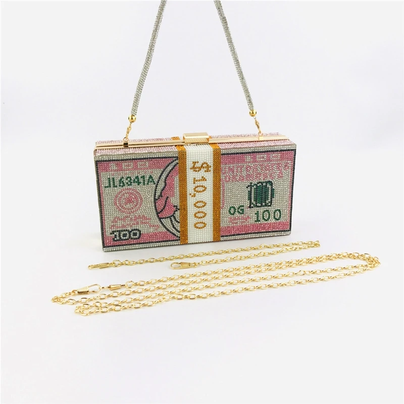 Клатч для денег, стразы, кошелек, 10000 долларов, стек наличных денег, вечерние сумки на плечо, Свадебная вечерняя сумка