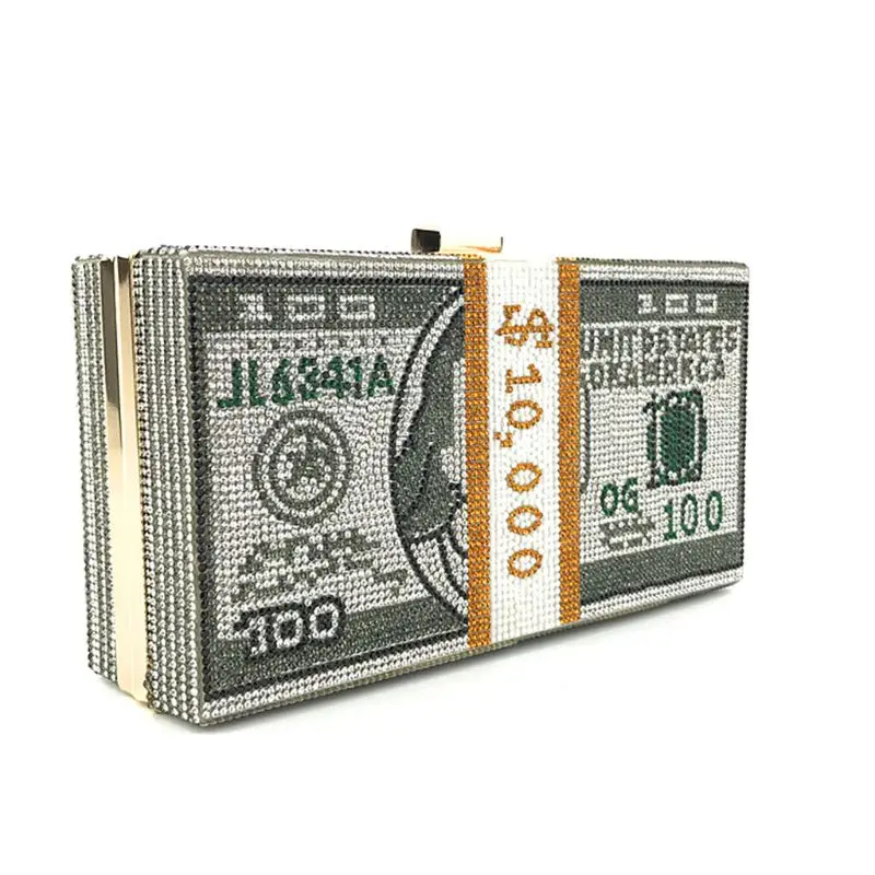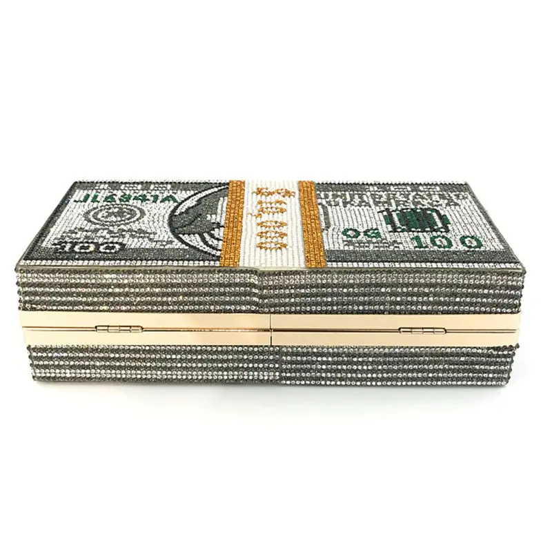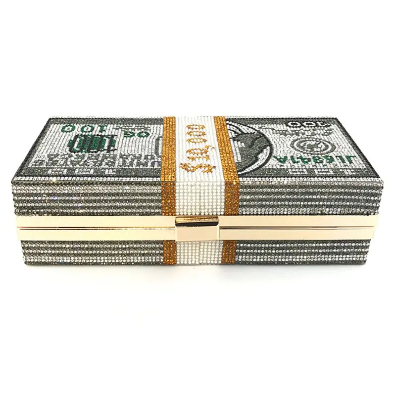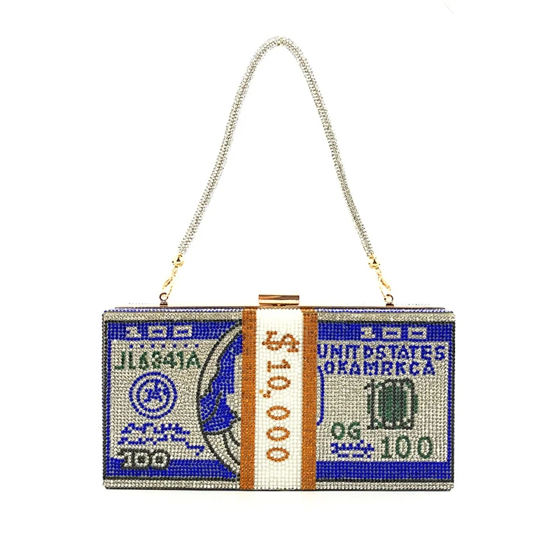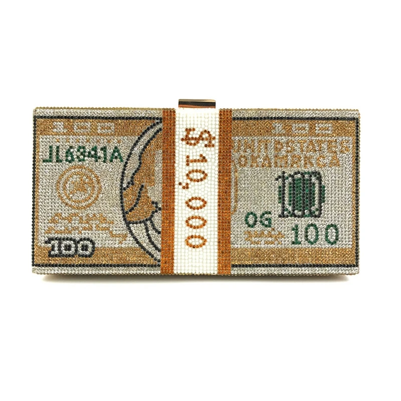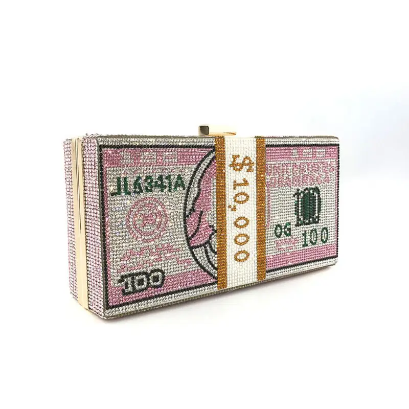 Клатч для денег, стразы, кошелек, 10000 долларов, стек наличных денег, вечерние сумки на плечо, Свадебная вечерняя сумка