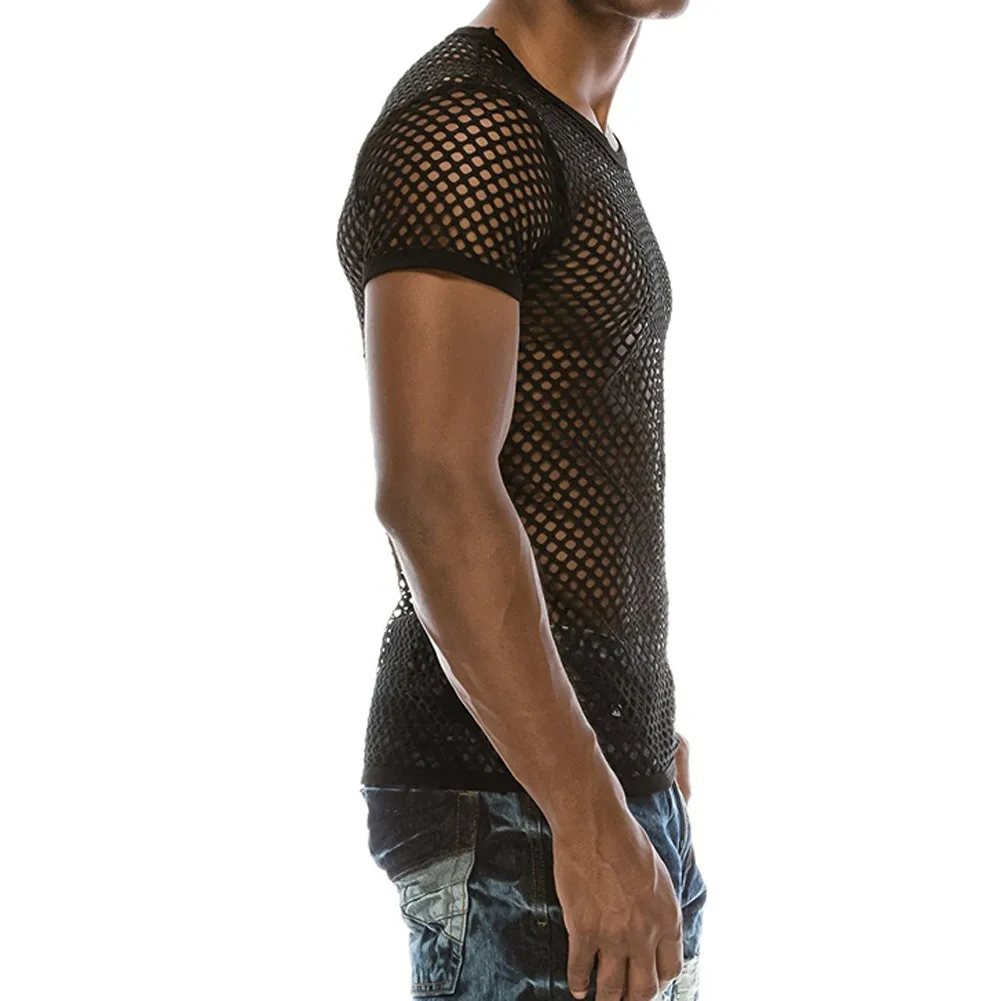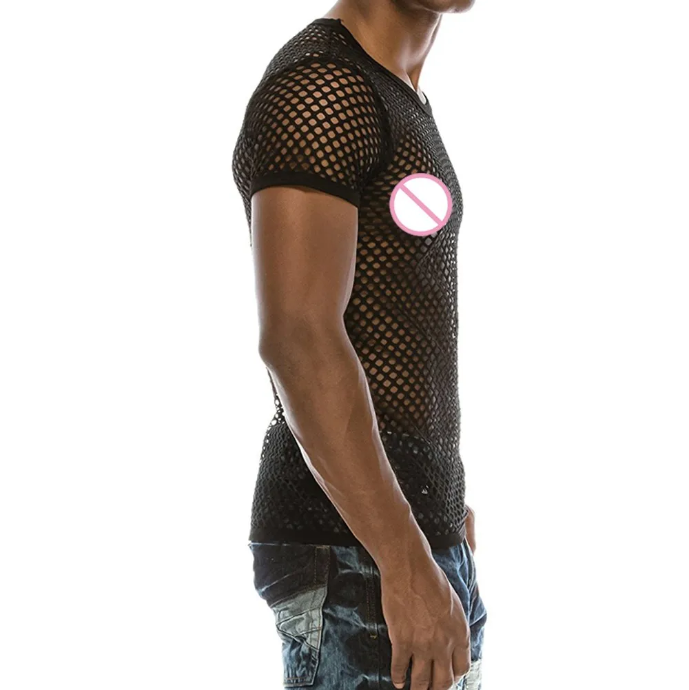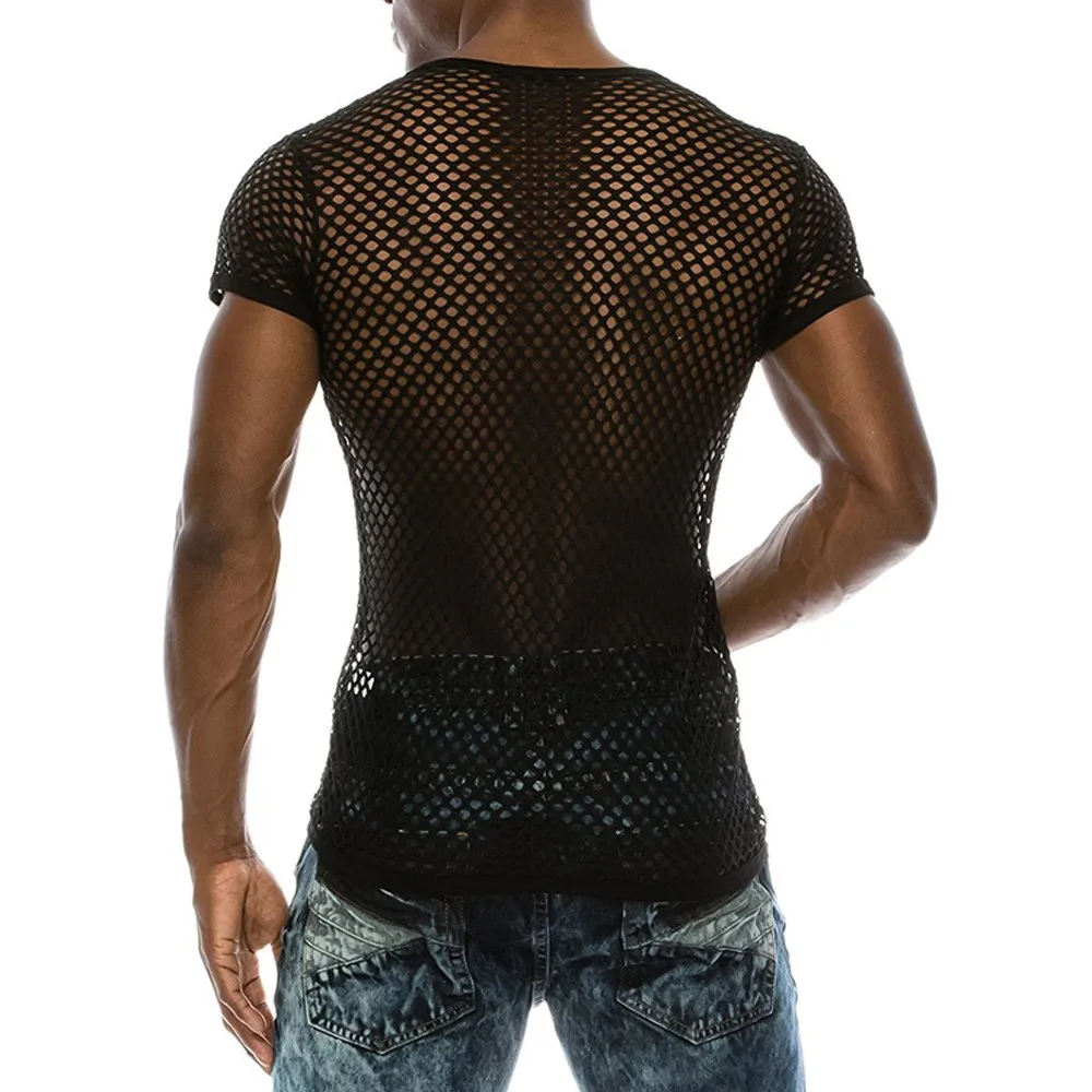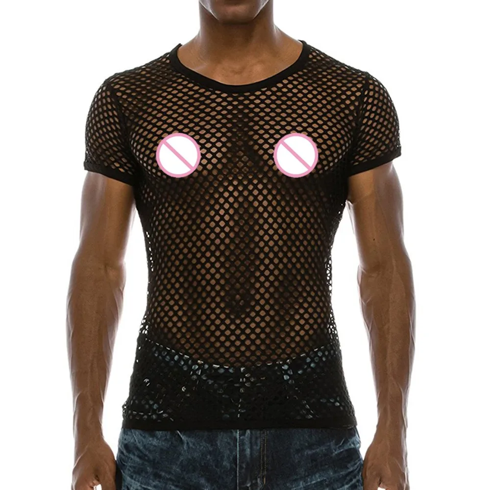Мужские прозрачные сексуальные сетчатые футболки, летний Повседневный пуловер с коротким рукавом, Сетчатая футболка, модная уличная одежда