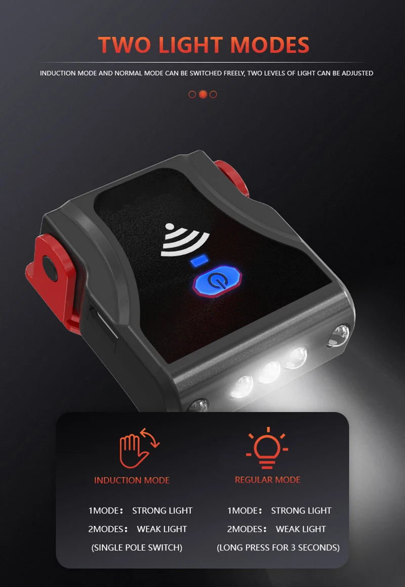 1. Индукционная фара на палец, когда ваша рука находится рядом с фарой в пределах 10 см, фара включится, когда вы оставите фару пальцем, она будет выключена.