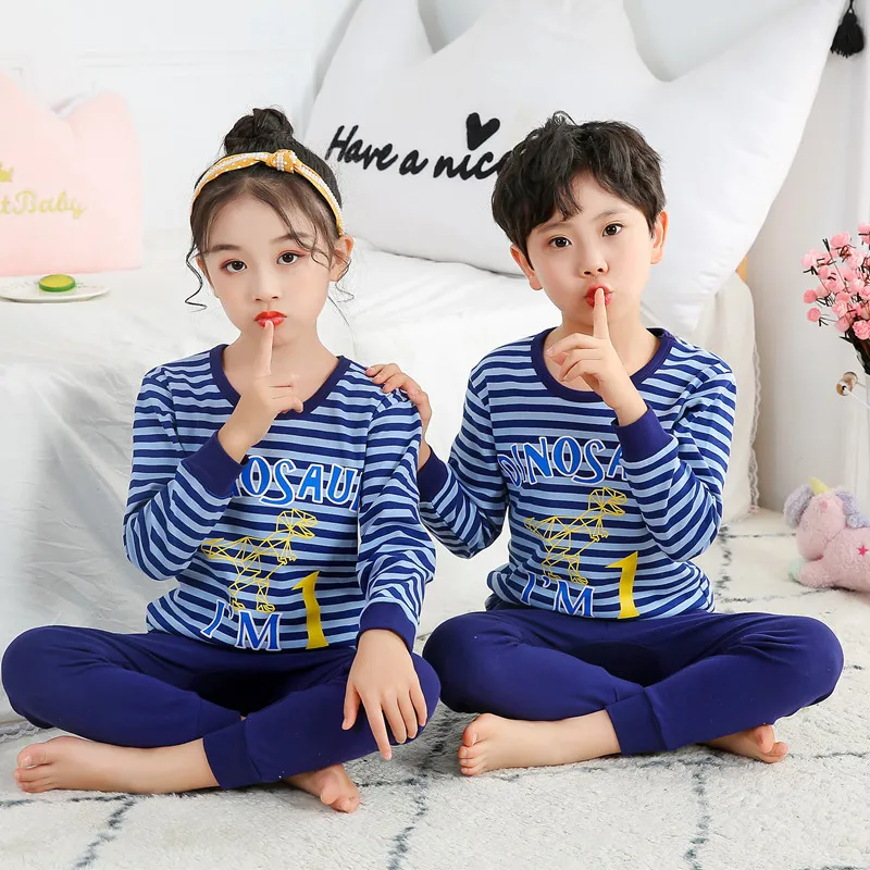 Новая осенняя одежда для мальчиков пижамы для девочек с длинным рук...