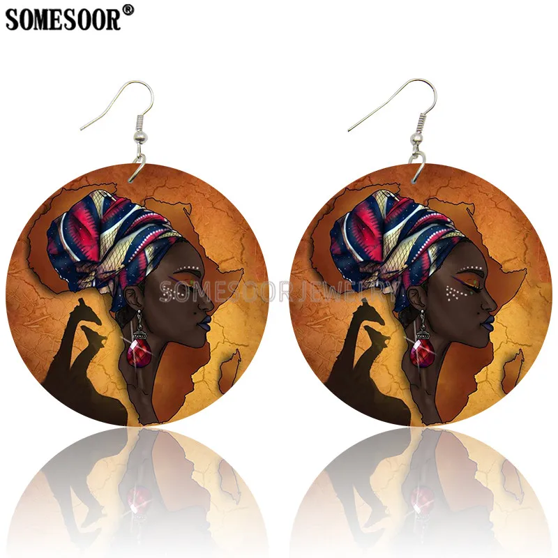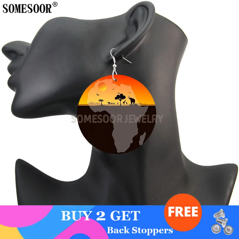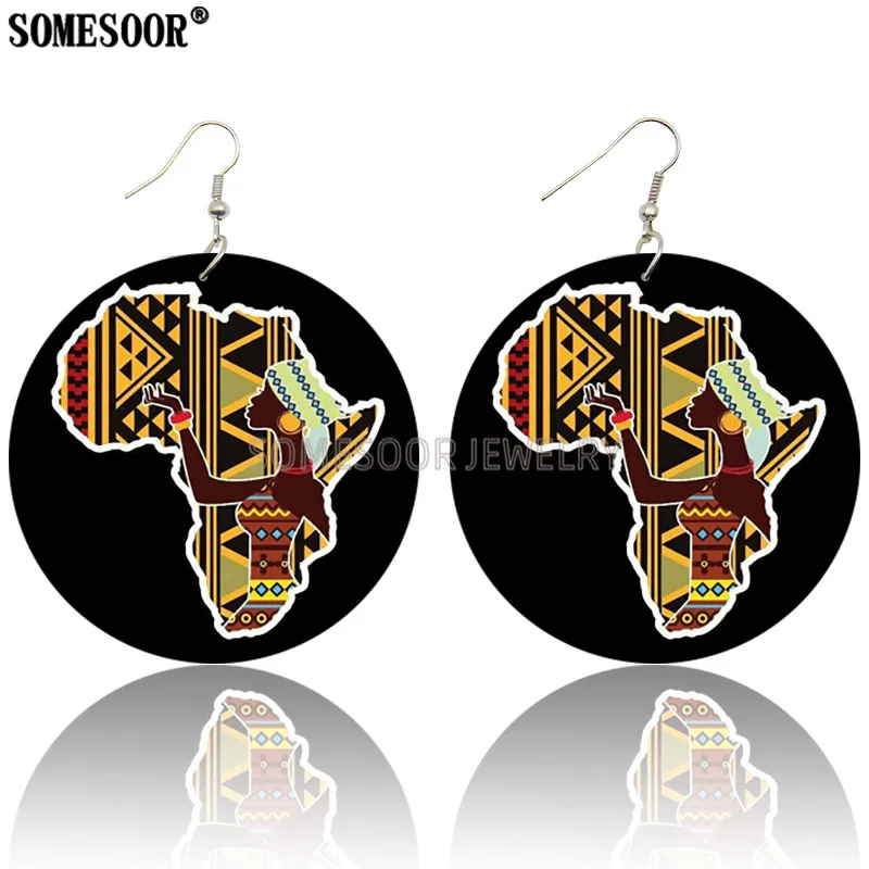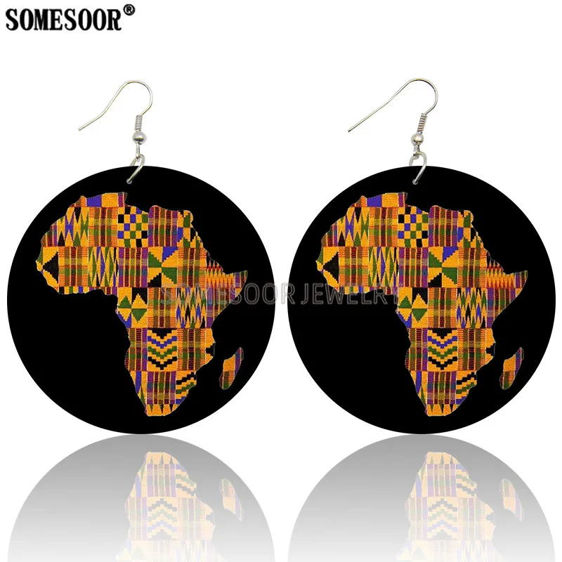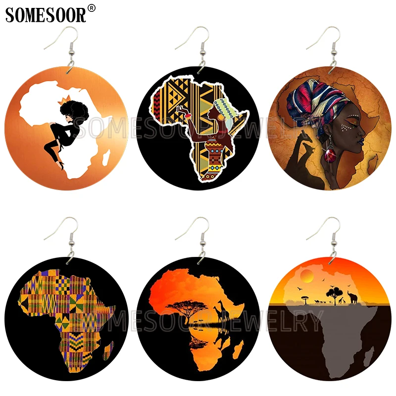 SOMESOOR, Африканская Карта, форма, природный пейзаж, креативный дизайн, дерево, двусторонняя печать, Винтажные висячие серьги для женщин
