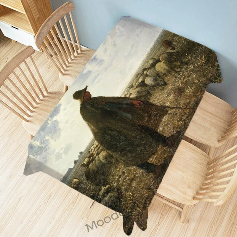 Французская ферма, пасторальный художник, Жан, Франсуа, просо, самый знаменитый рисунок, настенный художественный гобелен, водонепроницаемая льняная скатерть, настольная скатерть