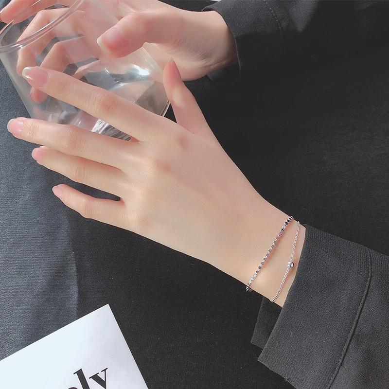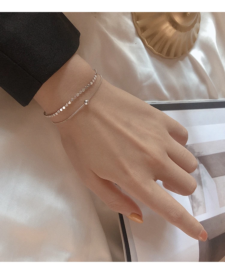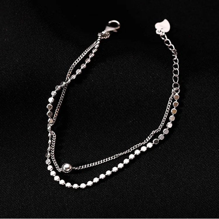 Женский двойной браслет из серебра 925 пробы, с маленькими бусинами
