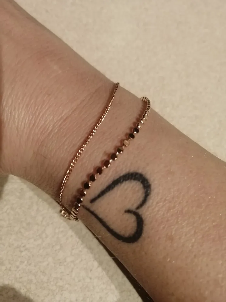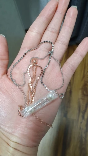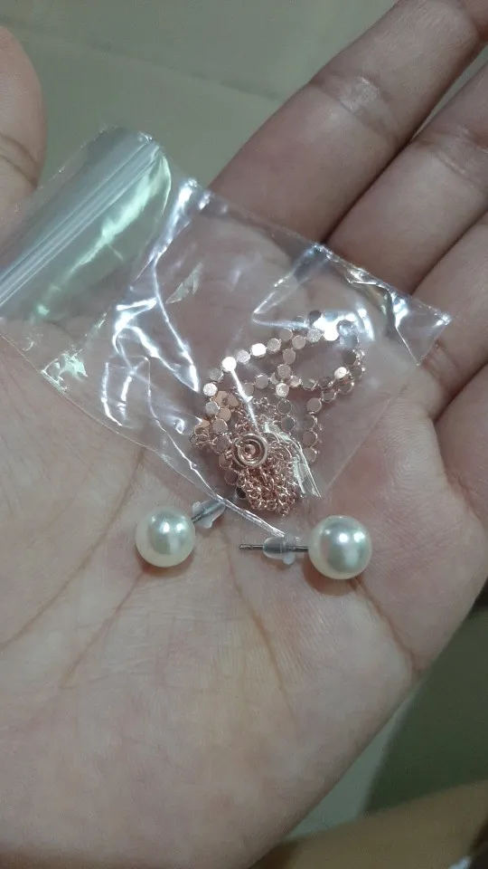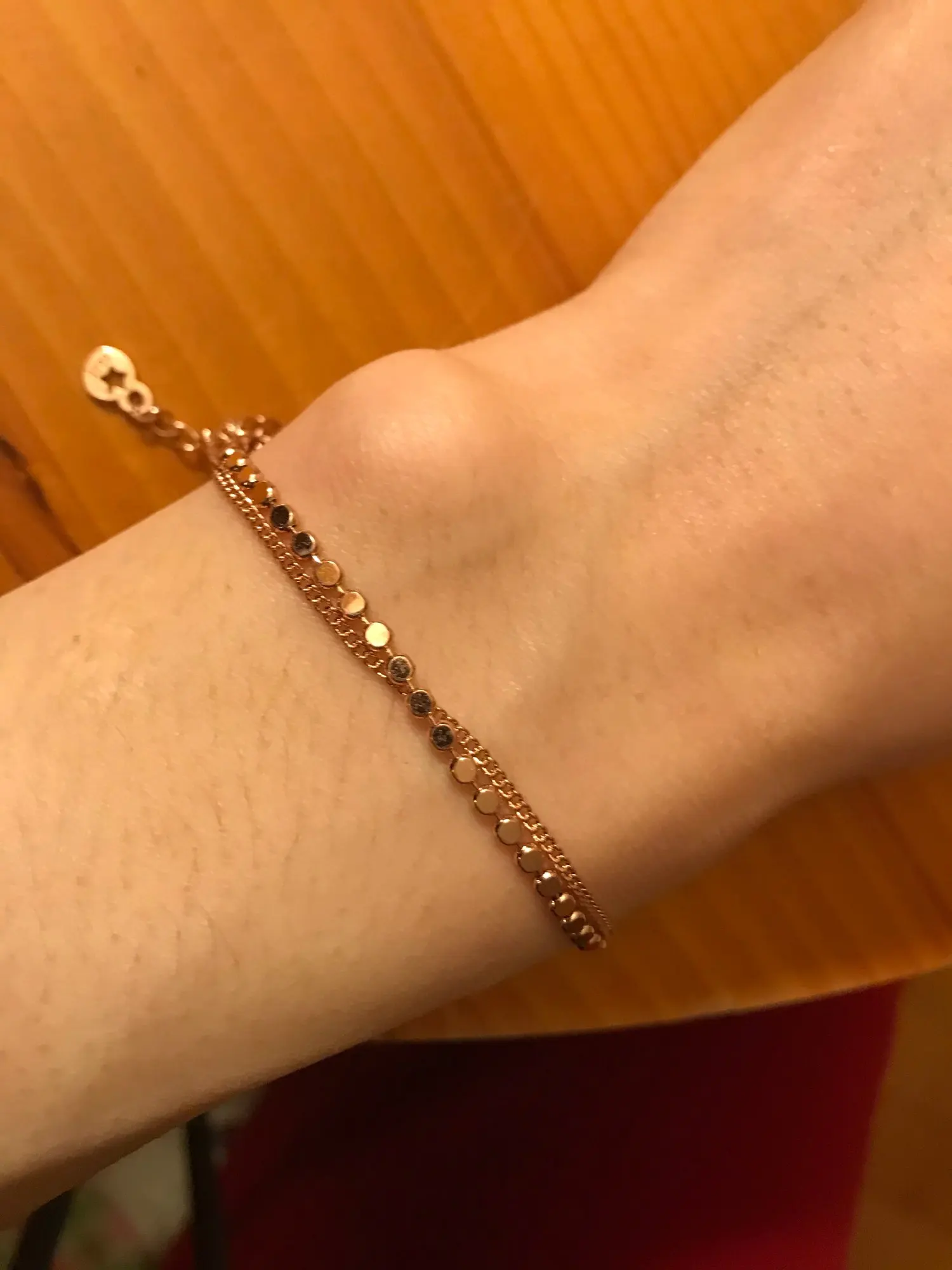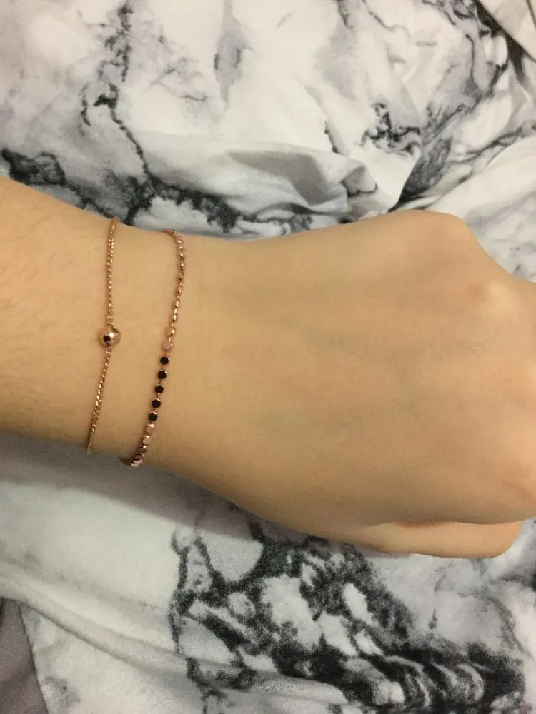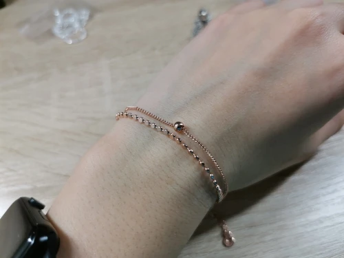 Красивый браслет. Крошечные и изящные и очень элегантные. Я еще не использовал его. Но он очень симпатичный и скоро будет им пользоваться. Также продавец отправил в подарок пару жемчужных заклепок. Это было очень мило и непредвиденно.