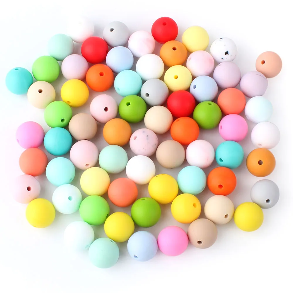 Силиконовые бусины 15 мм, 20 шт./лот, Прорезыватель для зубов, круглый детский Прорезыватель для зубов, свободный жемчуг, сделай сам, жевательный бисерный шарик для младенцев