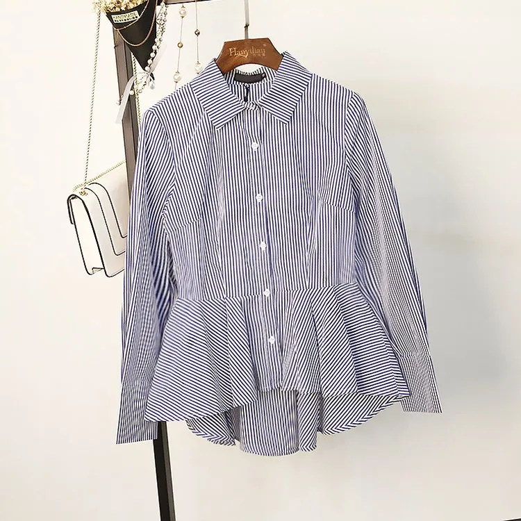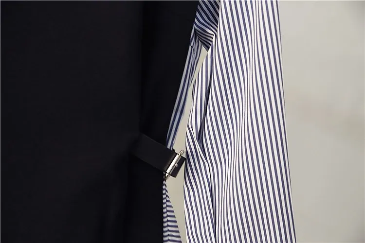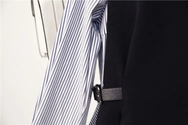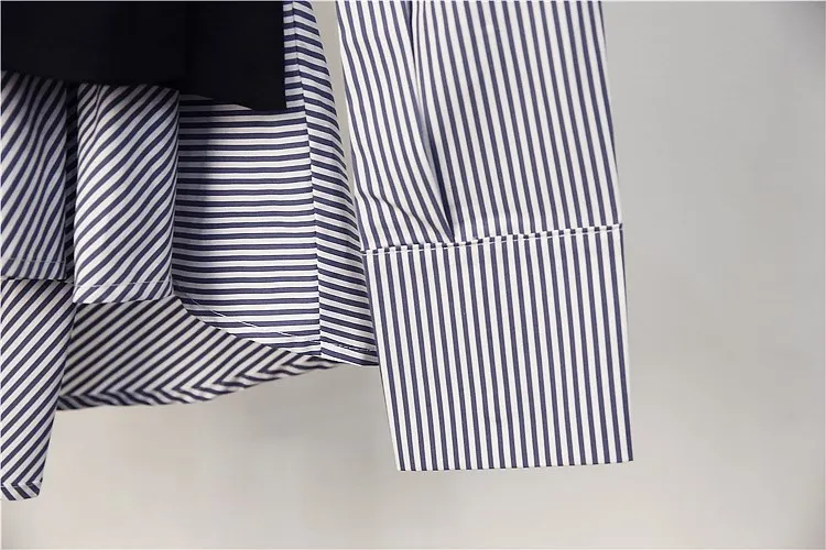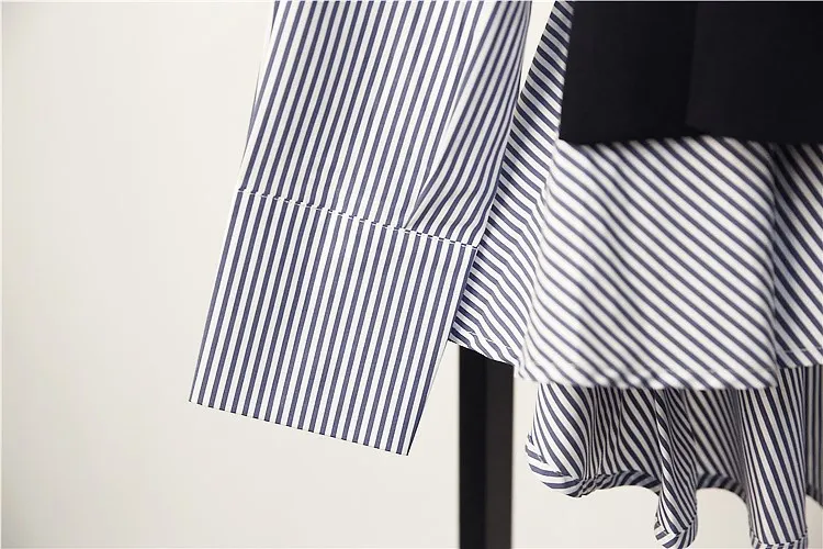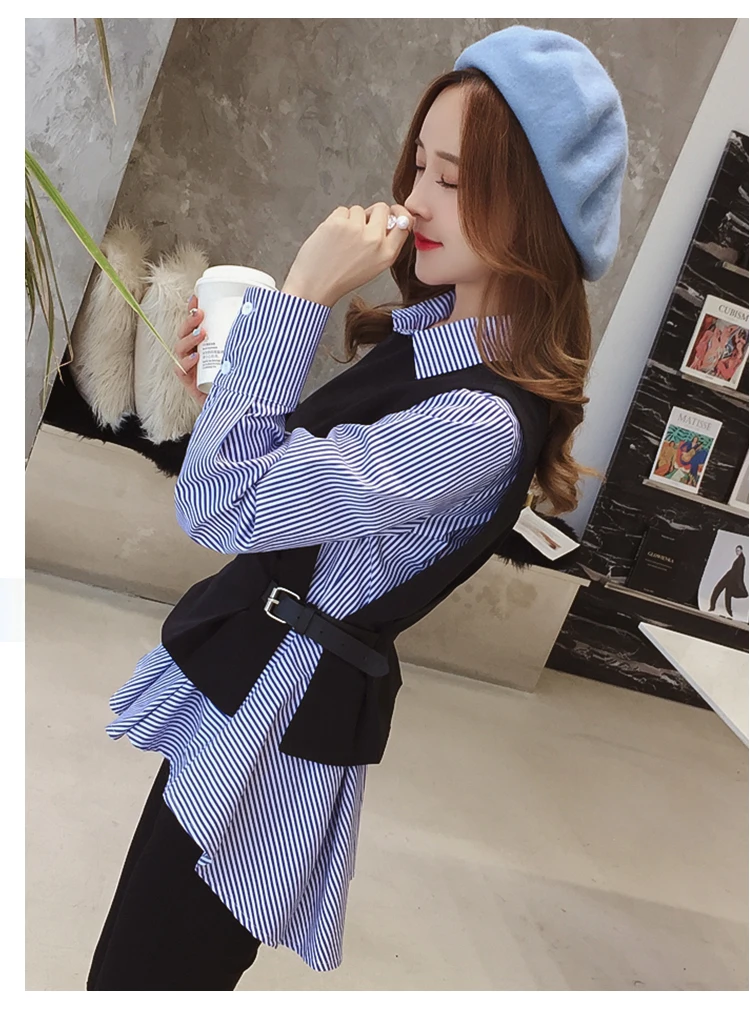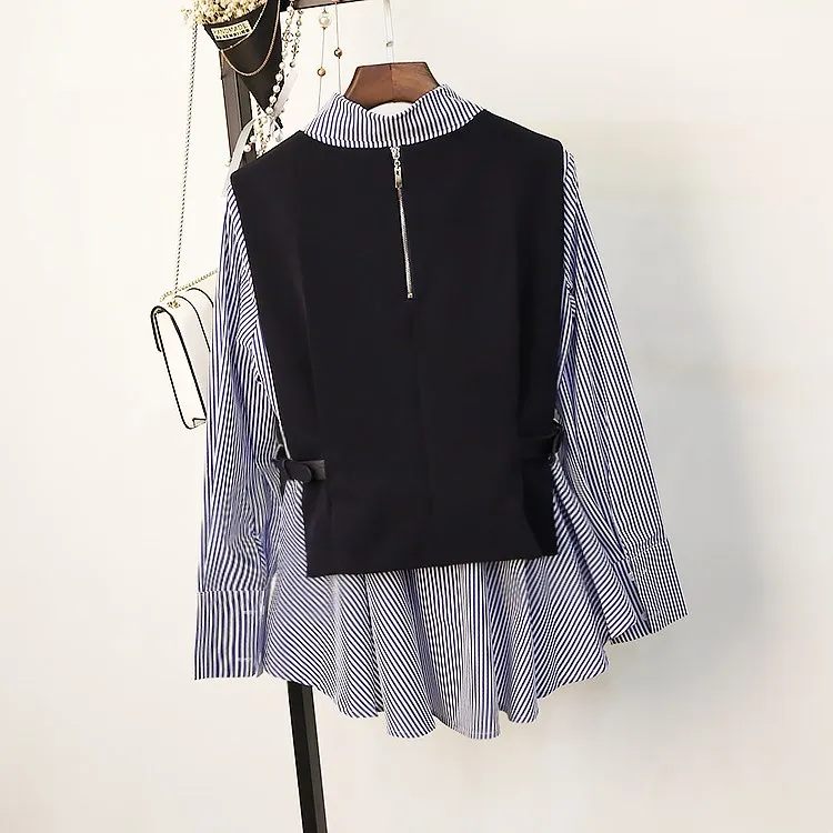 Блузка женская из двух частей, жилет с длинным рукавом и блузка в Корейском стиле, рубашка в полоску с размера плюс, топ на весну-осень