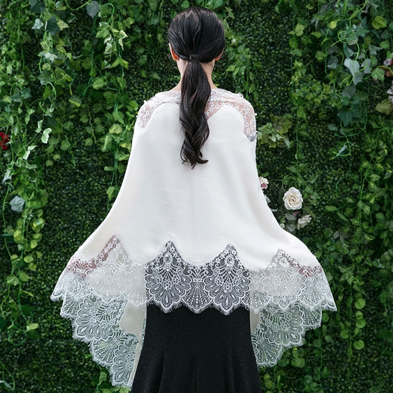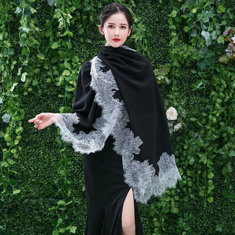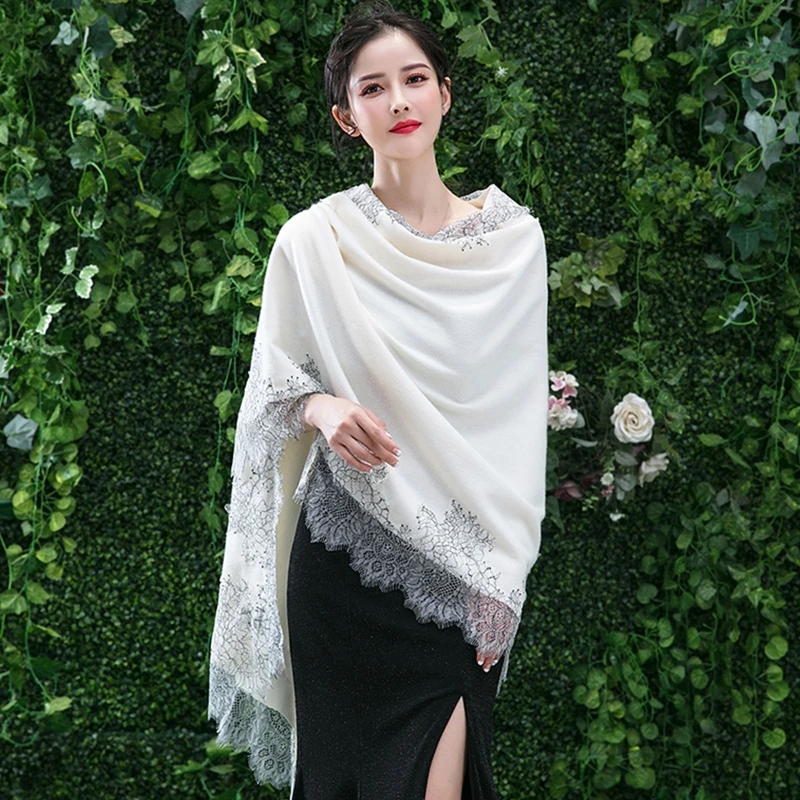 Шарф женский осенний, из пашмины, с цветочным кружевом