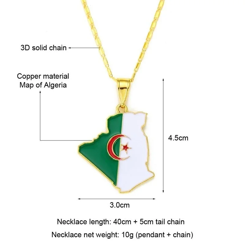 Ожерелье мужское с подвеской в форме карты страны Алжира
