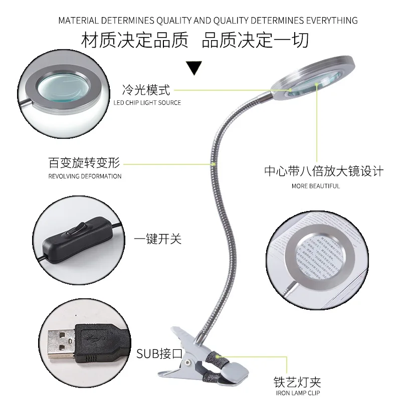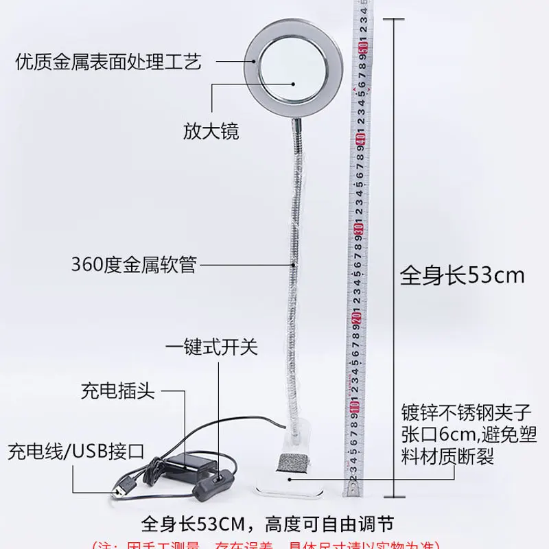 Лампа-лупа для тату с зажимом 8X, светодиодсветильник лампа холодного света с USB, для макияжа бровей, наращивания ресниц, осветительное оборудование для салона красоты