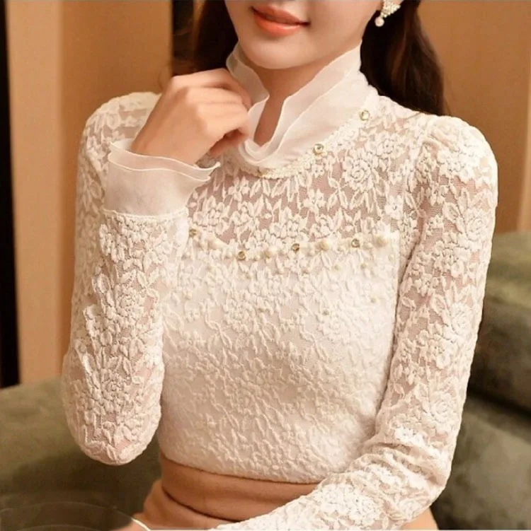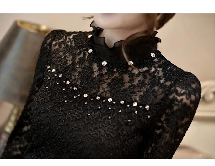 Женская кружевная блузка с рюшами, Полупрозрачная блузка с воротником-оборкой, модель 5XL на весну и осень