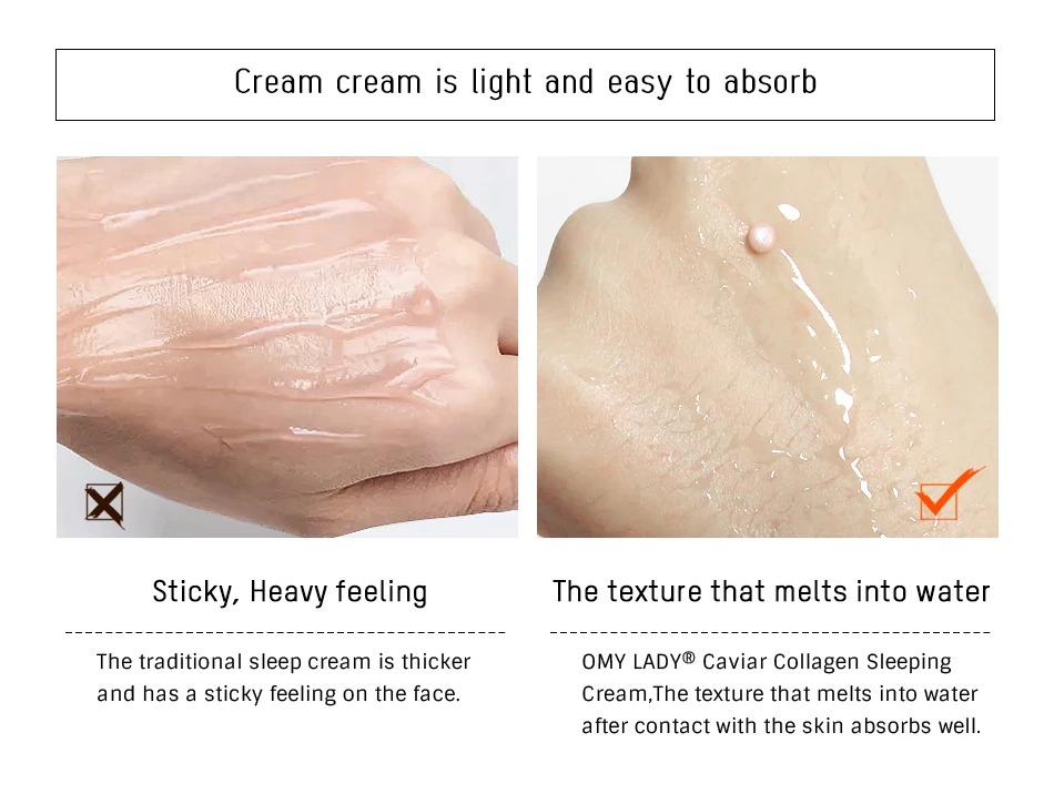 OMY LADY®Крем для сна с коллагеном икры, текстура, которая тает в воде после контакта с кожей, хорошо впитывается.