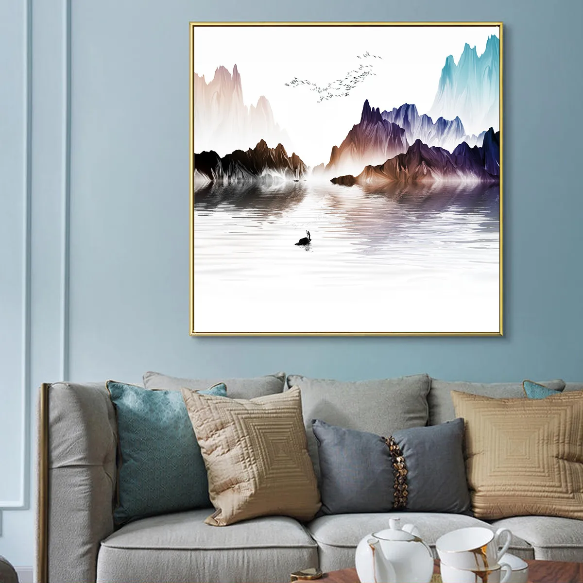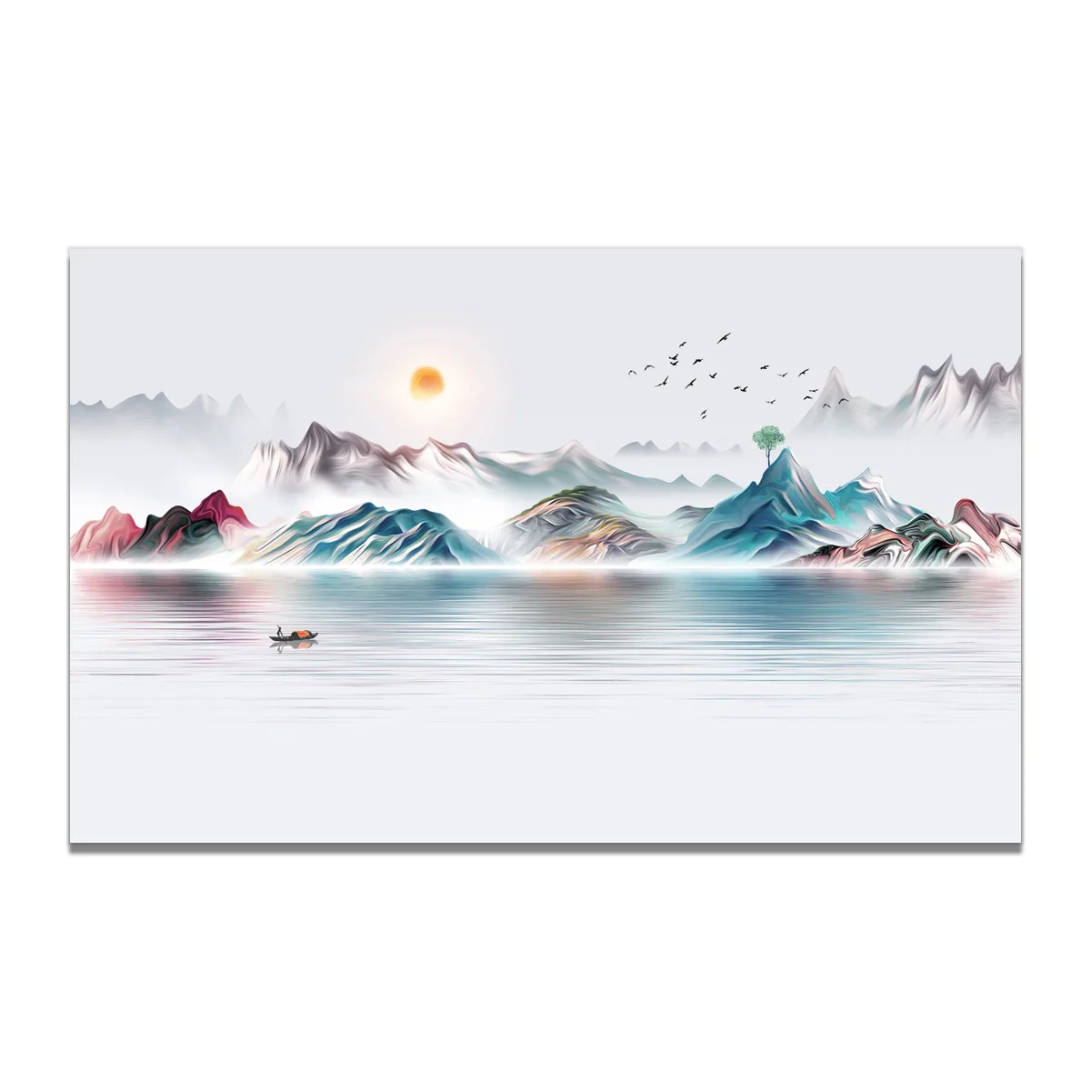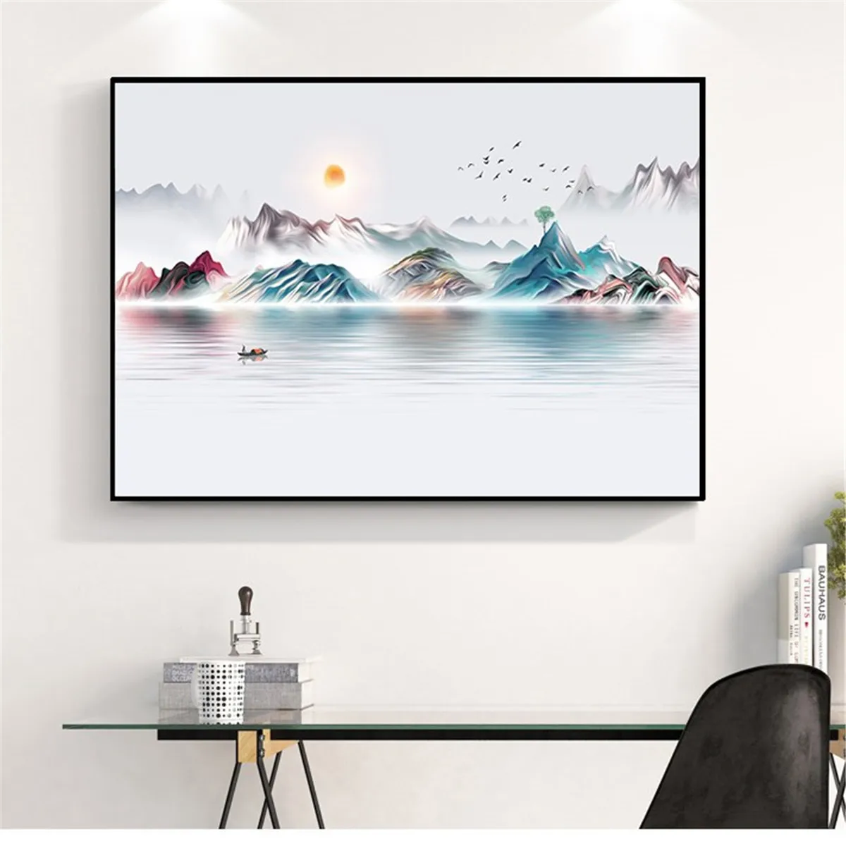 Чернильная живопись, пейзаж, горная фотография, холст, печать, живопись, настенное искусство, гостиная, украшение для дома