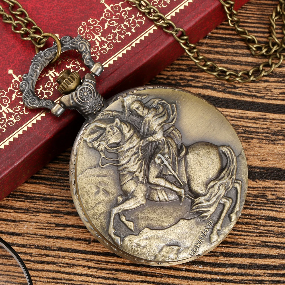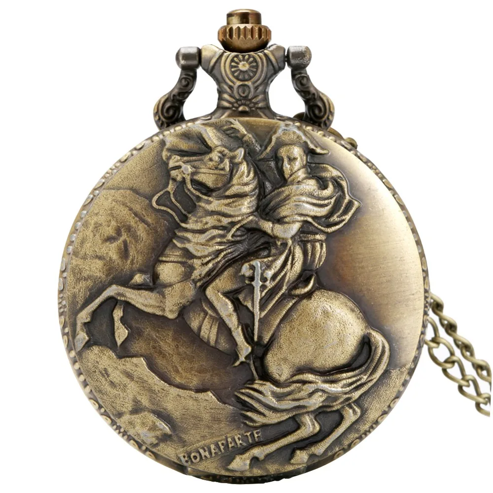 Бронзовый Наполеон Бонапарт лошадь рыцарь дизайн антикварные кварцевые карманные часы Винтаж герой ожерелье кулон карманные часы FOB подарки