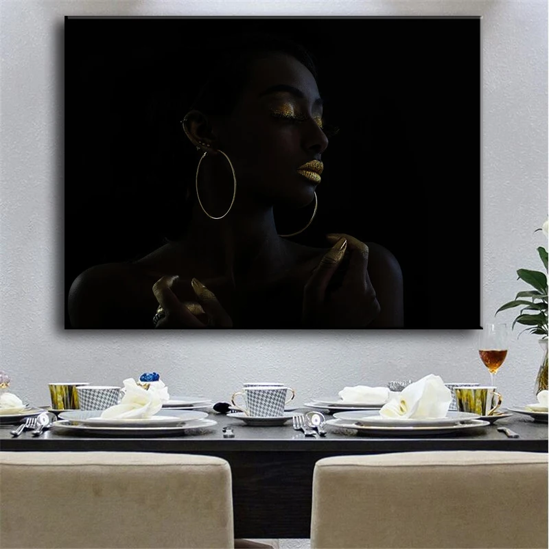 Черное женское лицо с золотым жидким холстом настенные картины плак...