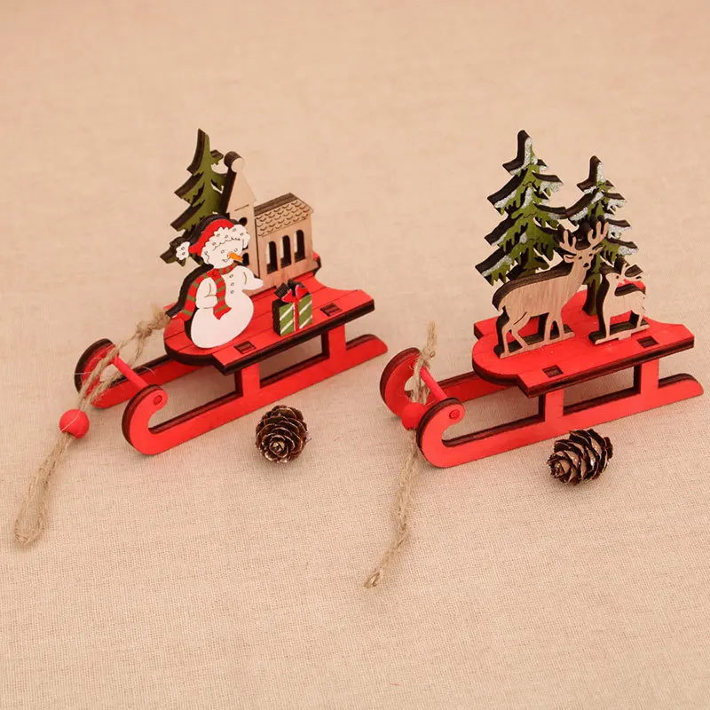 Рождественское украшение ручной работы, деревянные сани с оленями, ...