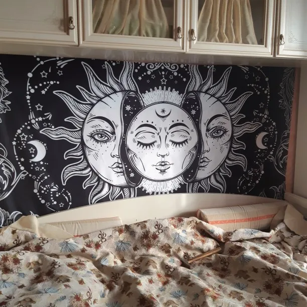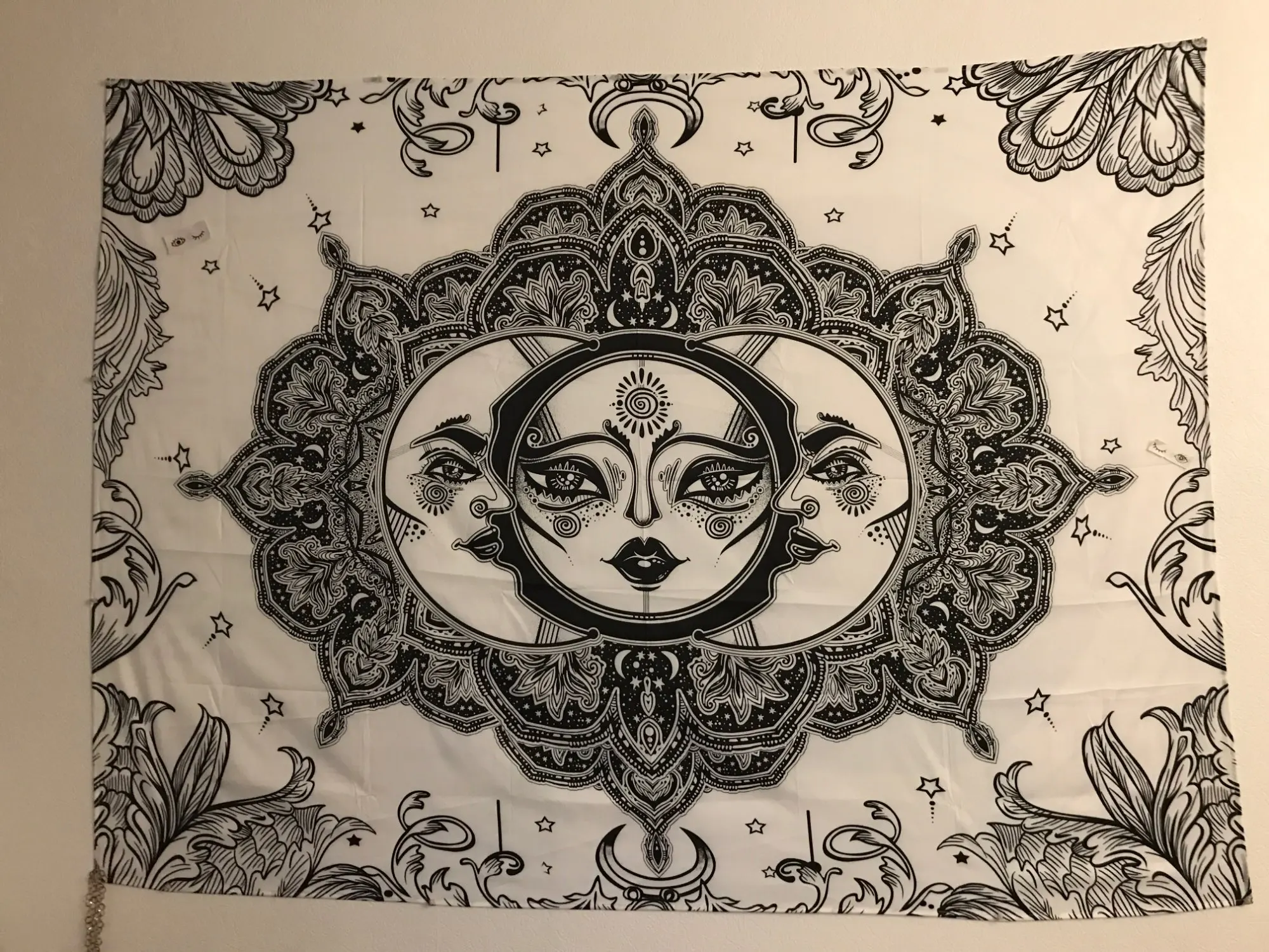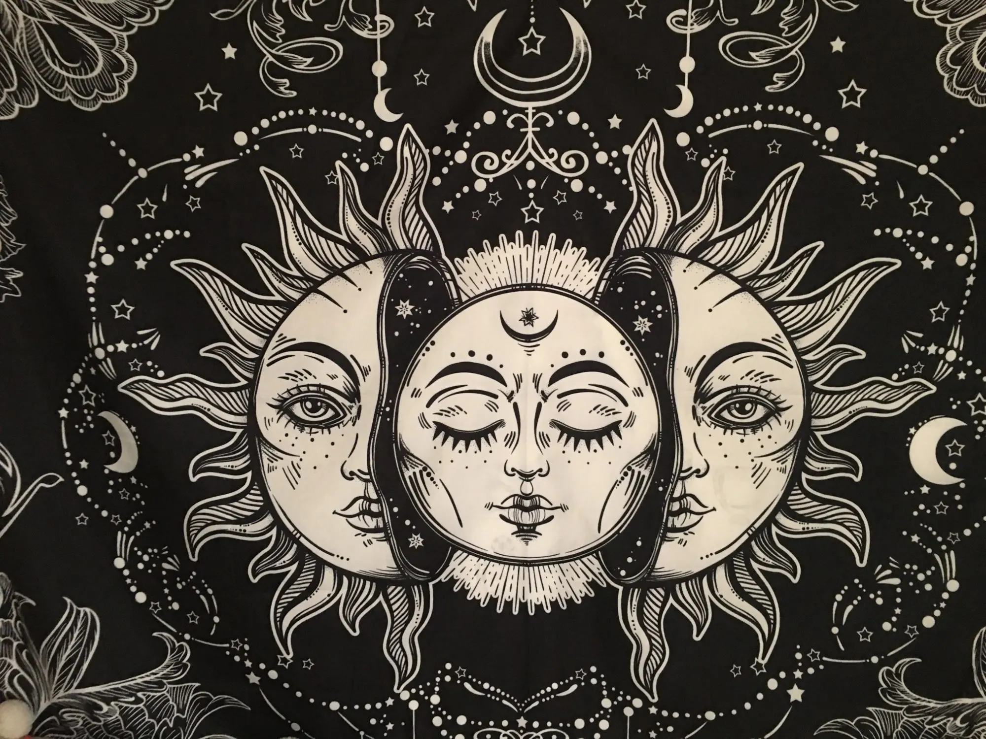 Гобелен с изображением солнца, Луны, мандалы, белого и черного цветов
