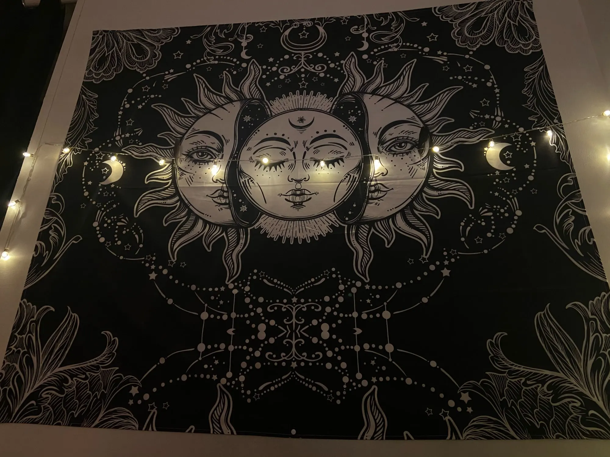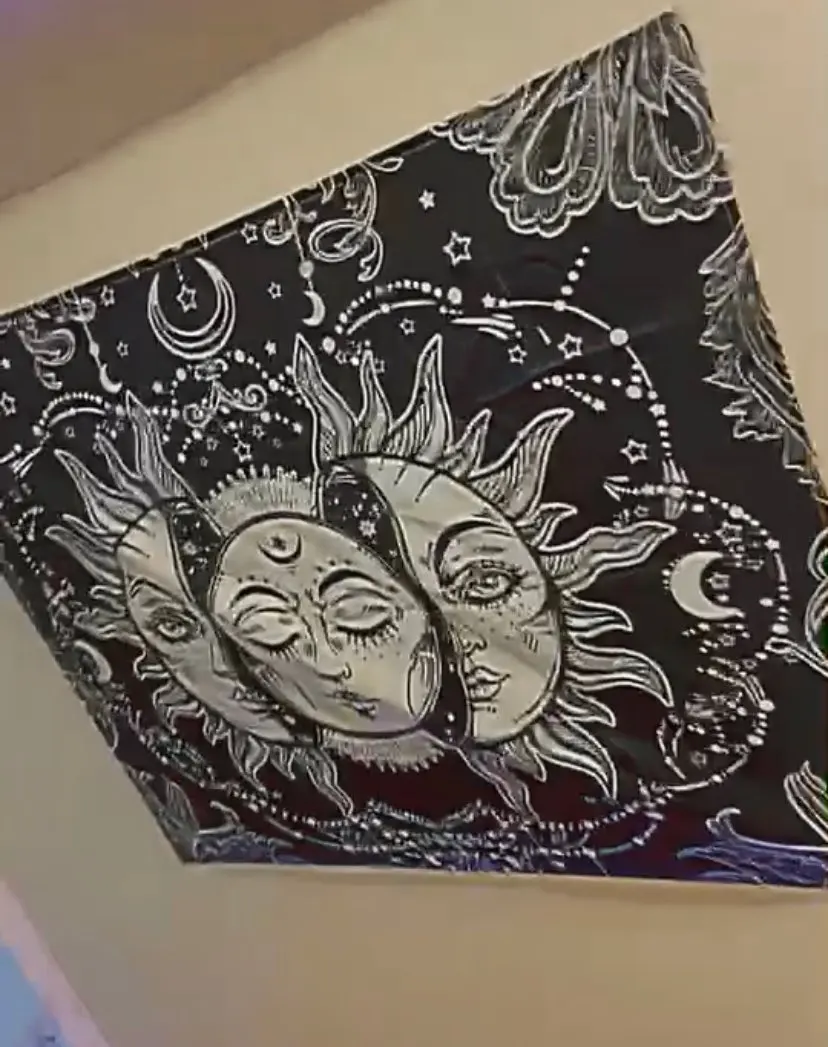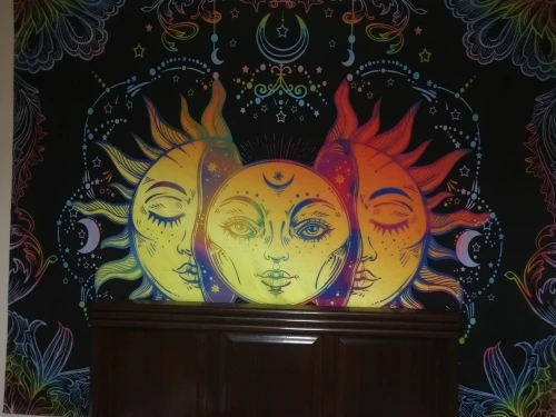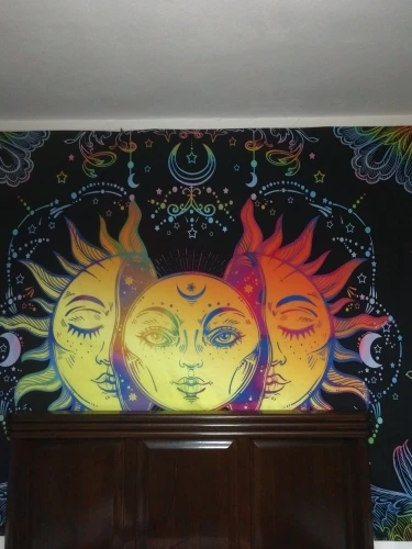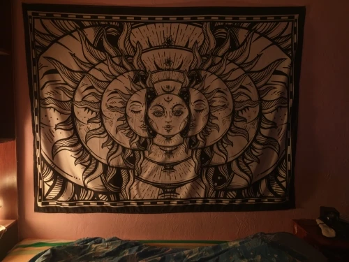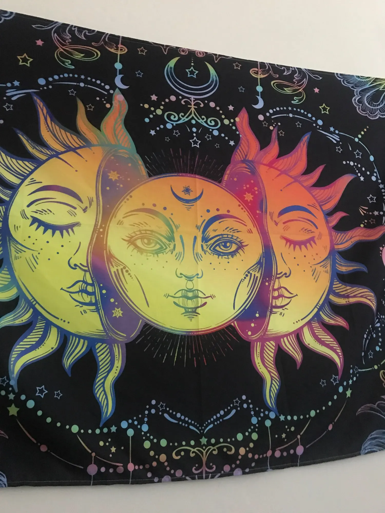 Гобелен с изображением солнца, Луны, мандалы, белого и черного цветов
