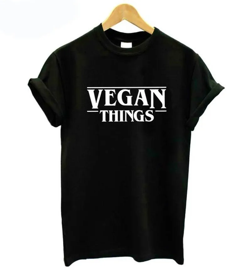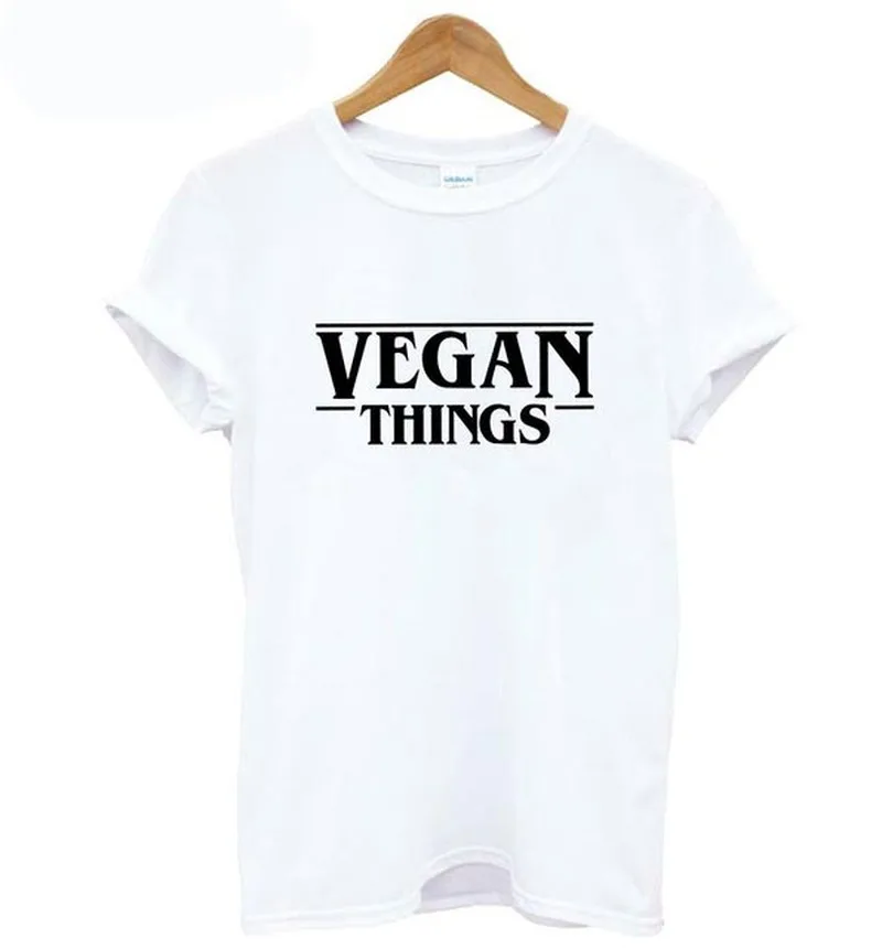 Веганских материалов вещей с буквенным принтом Футболка Для женщин короткий рукав О-образным вырезом, футболка с длинным рукавом Лето Для женщин футболка топы Camisetas Mujer