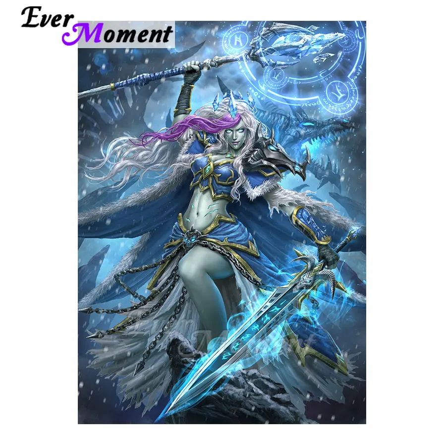 Ever Moment Алмазная мозаика, художественная живопись, полный квадрат, сверла, мультфильм, женщина, воин, держащий меч, ручная работа, ремесло, домашний декор 5L720