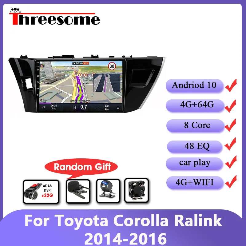 Автомагнитола 2DIN на Android 10, 4 Гб + 64 ГБ, Wi-Fi, мультимедийный видеоплеер для Toyota Corolla Ralink 2014-2016, GPS-навигация, DSP