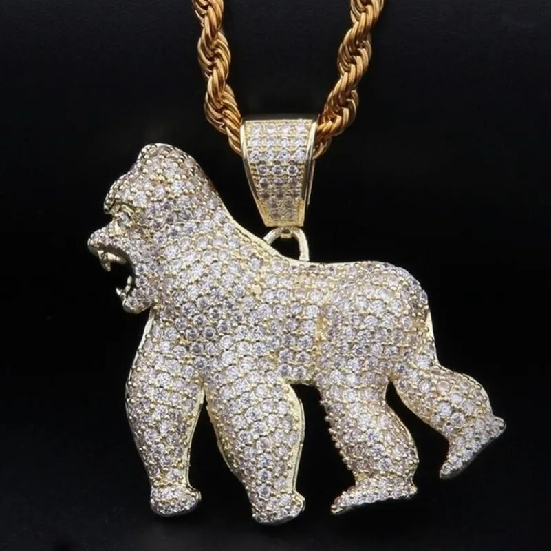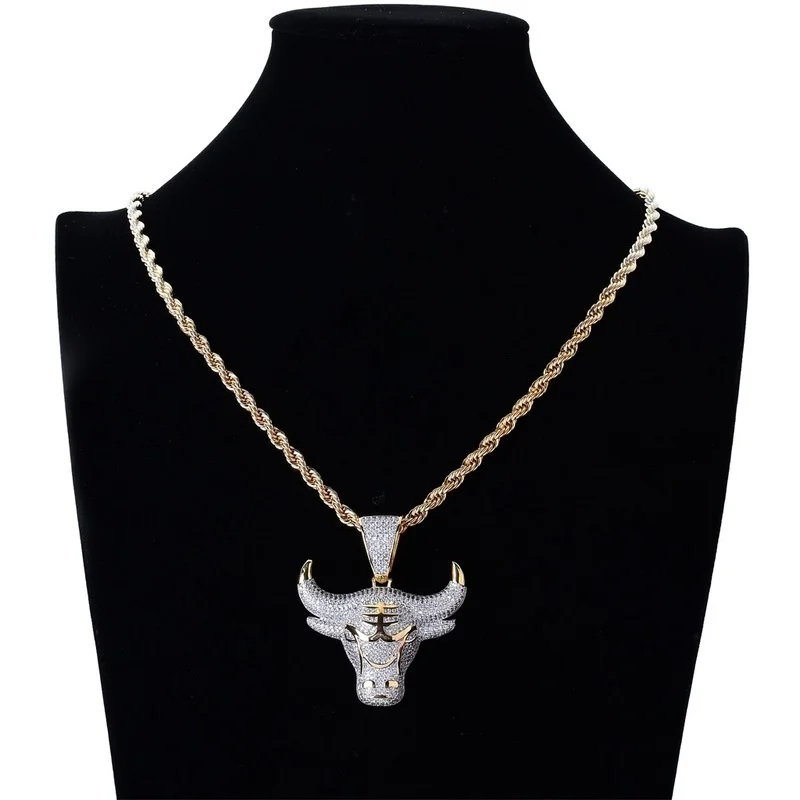 Ожерелье мужское из нержавеющей стали, модное Сверкающее Золотистое Ожерелье В Стиле Хип-хоп, подвеска в форме головы быка Стразы