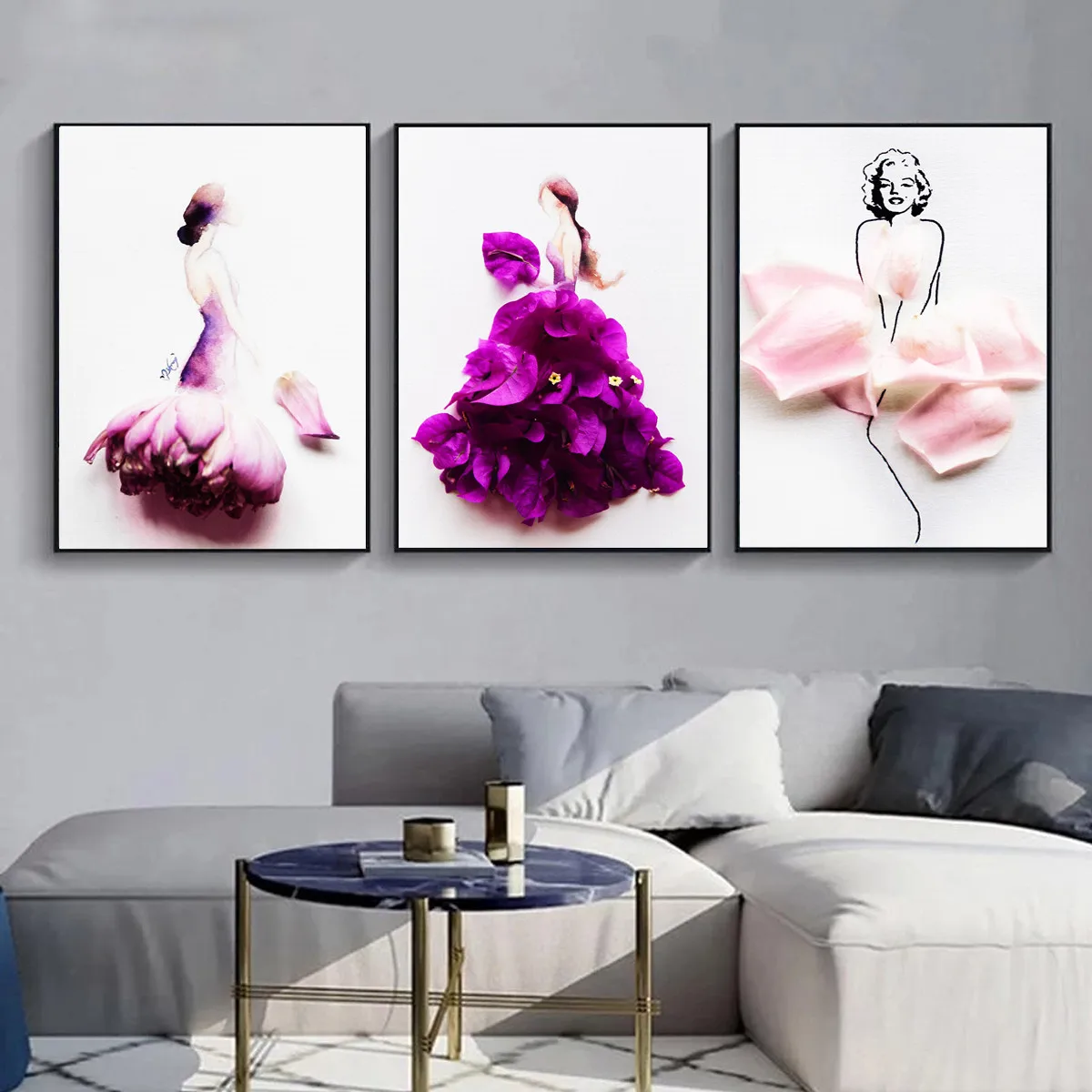 Цветочное платье красивая женщина плакат холст печать картина настенное Искусство гостиная украшение для дома