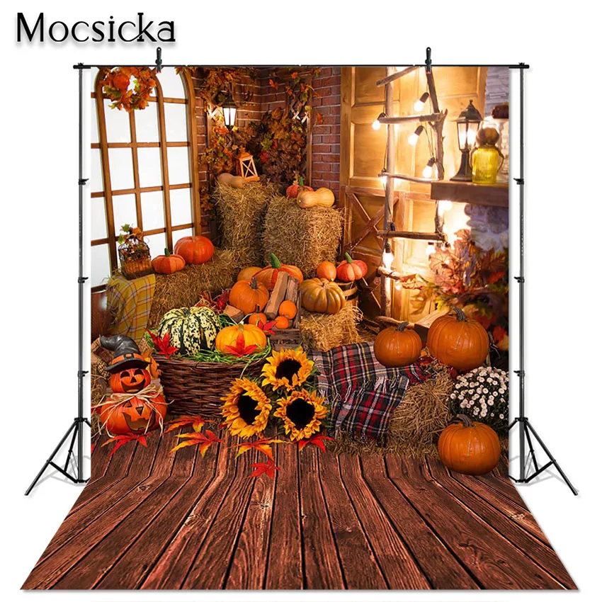 Фон для фотосъемки в стиле Дня благодарения Mocsicka, Хэллоуин, осень, тыква, сарай, деревянный осенний фон для студийной портретной фотосъемки