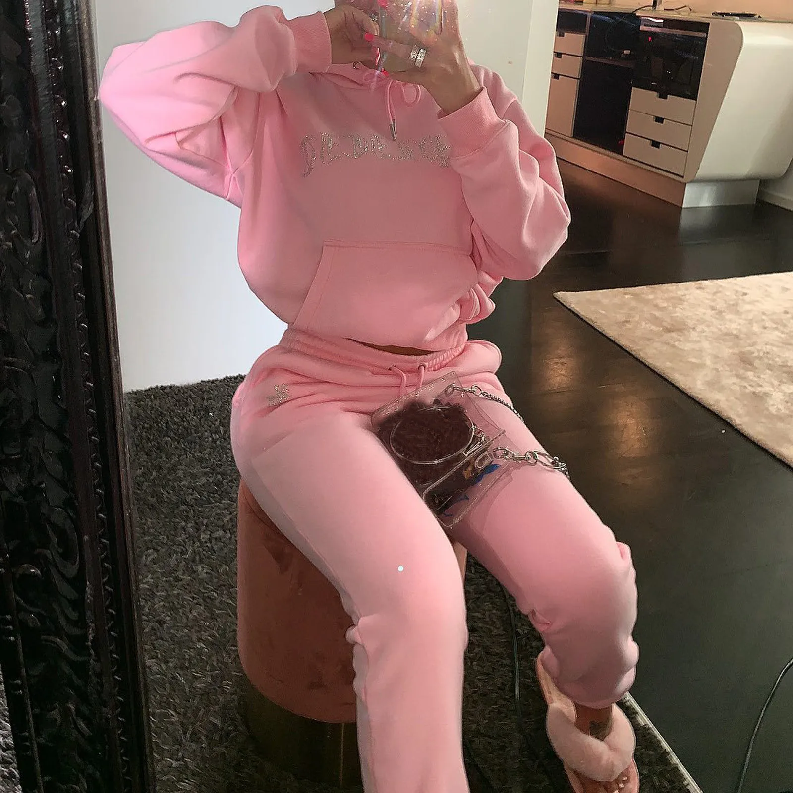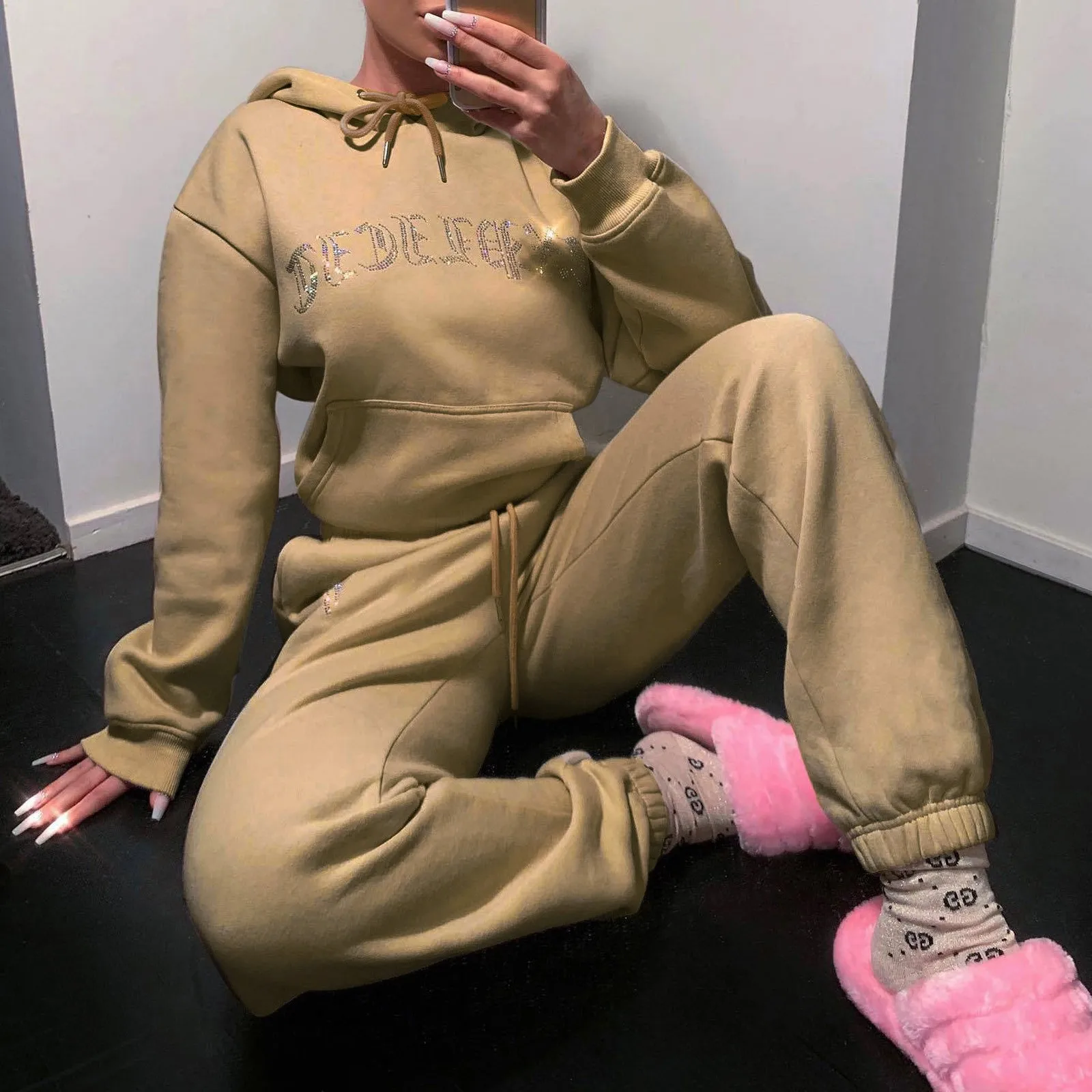 Женский Повседневный флисовый комплект с длинным рукавом, размера плюс толстовка с принтом, брюки, спортивный костюм, повседневный уличный Женский комплект из 2 предметов, Топ = брюки