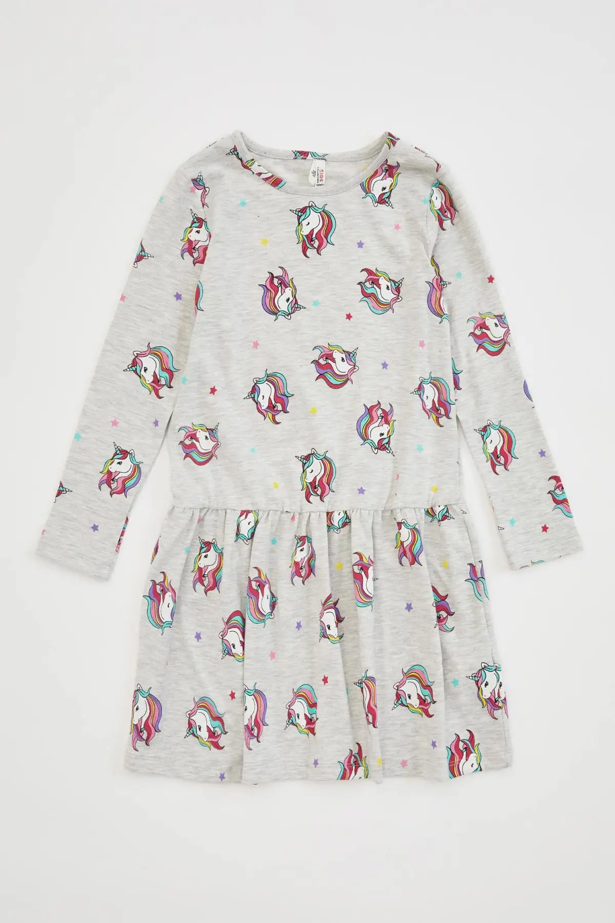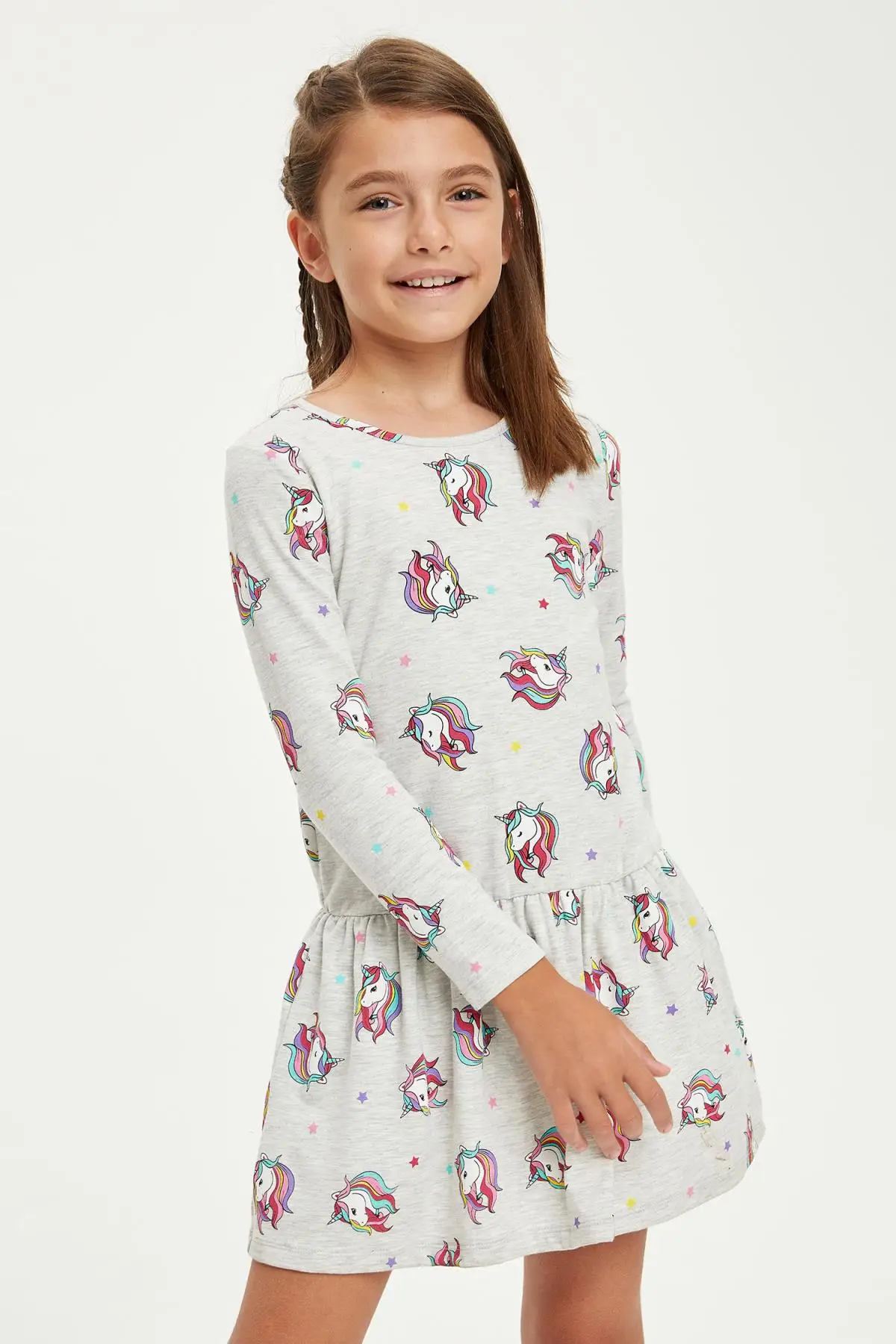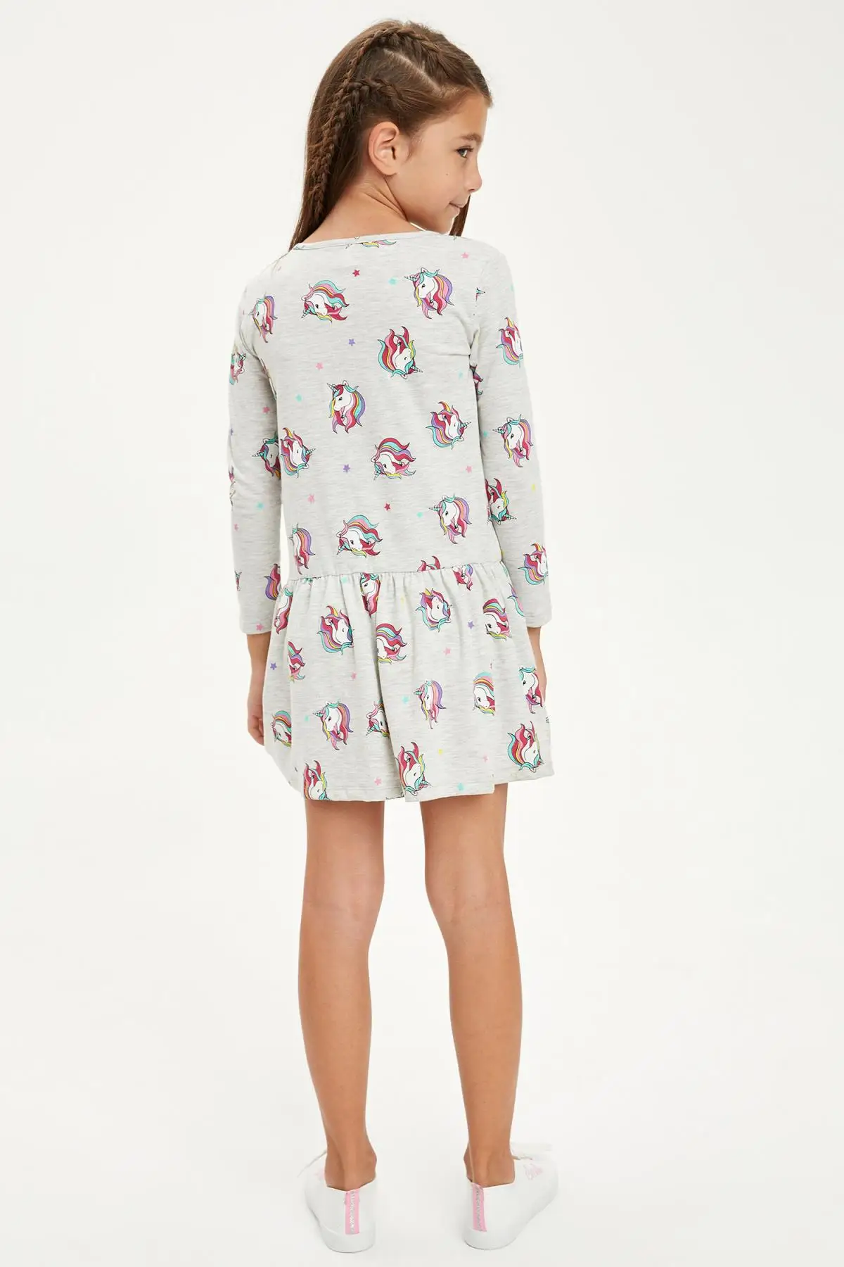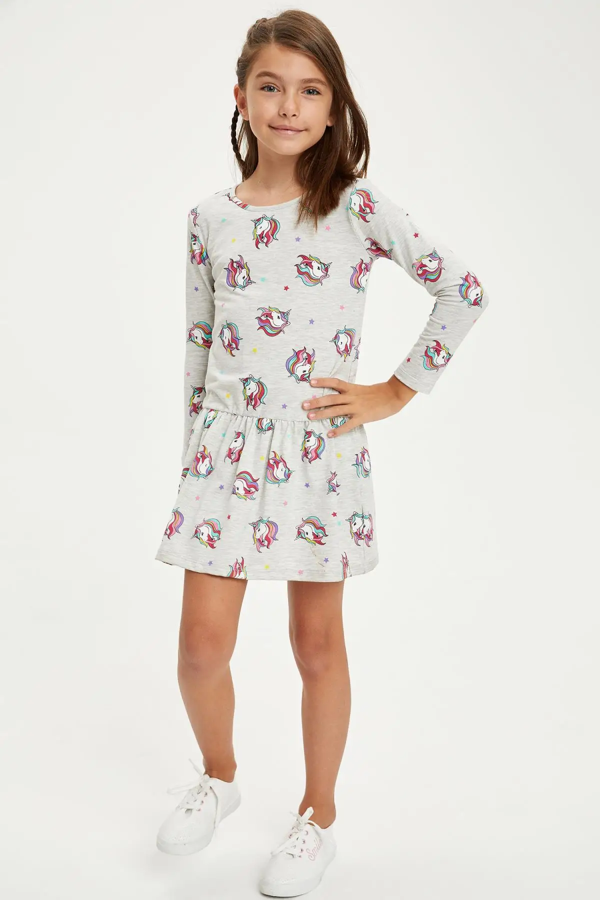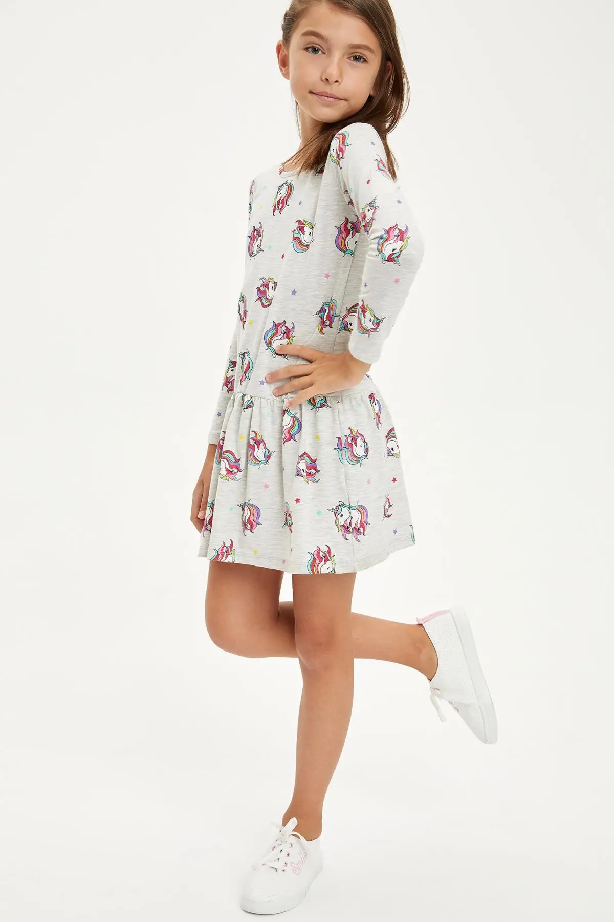 DeFacto осень платье для девочек длинное платье для девочек с рисунком в виде единорога с принтом с длинным рукавом платья для детей, детская одежда, балетные пачки, удобные Fashion-R2350A620AU