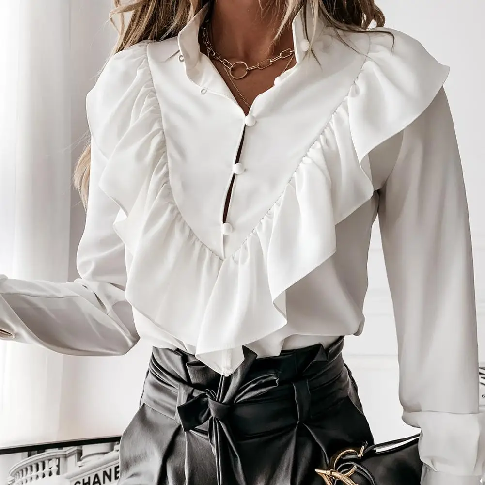 Hirigin элегантные женские демисезонные рубашки однобортный дизайн оборки Декор v-образный вырез длинный рукав узор в горошек тонкий кардиган Топ