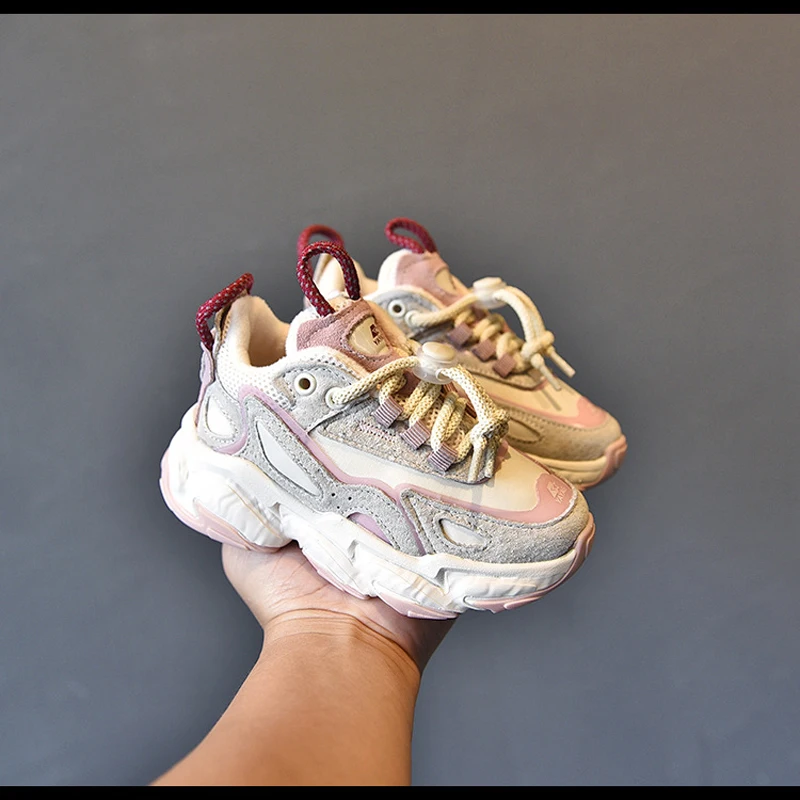 Зимние детские спортивные кроссовки, детская обувь из натуральной кожи для девочек, Брендовые повседневные кроссовки для девочек, кроссовки на массивной подошве, Новинка