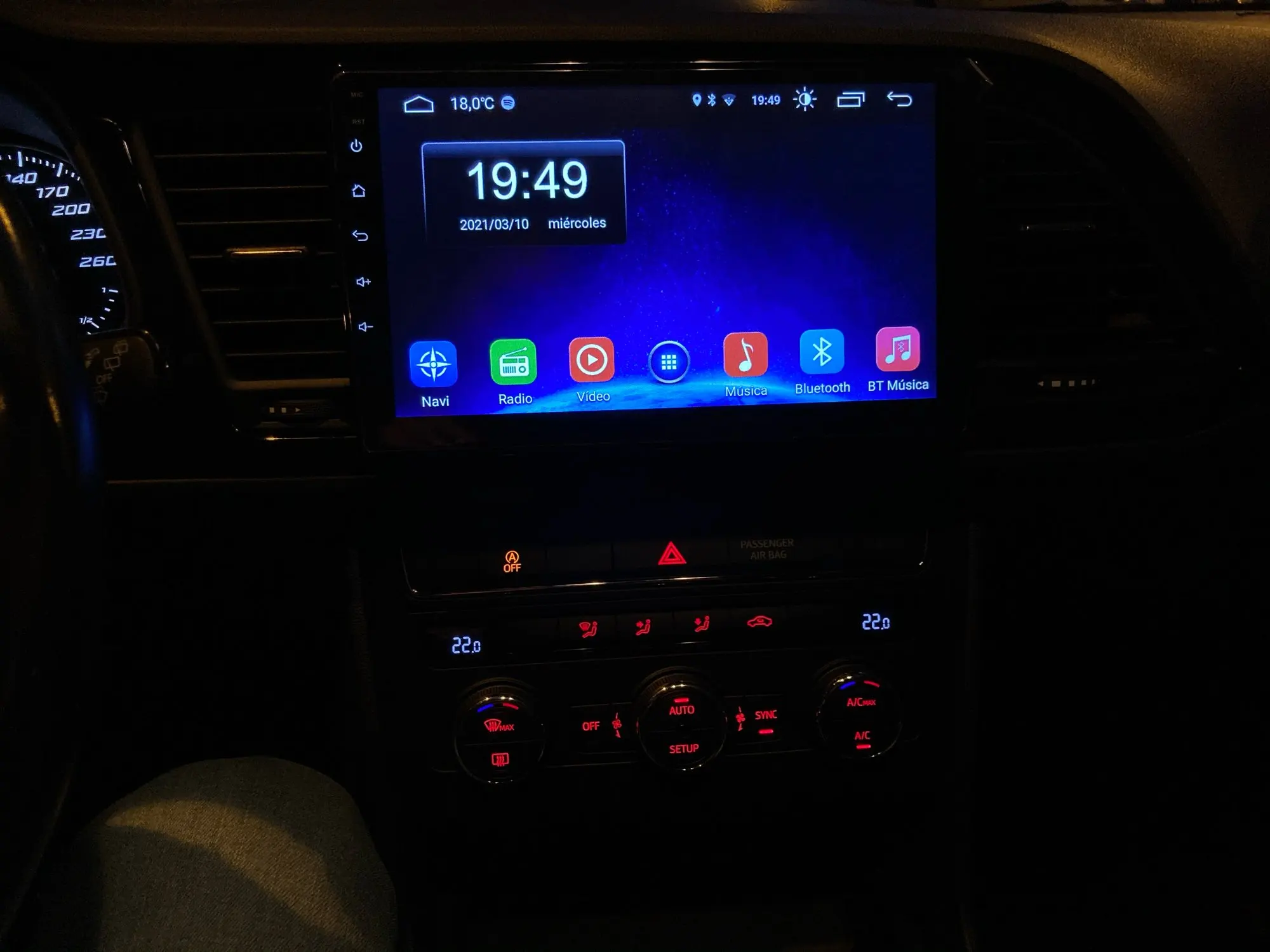 Работает хорошо и хорошо вписывается, некоторые недостатки, как показано на экране, кондиционер случайно не включен, и что потребление всегда отмечает 99L/100 км, но в остальном хорошо