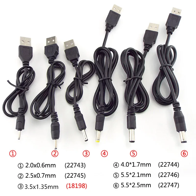 USB к DC 3,5*1,35 мм 2,0*0,6 мм 2,5*0,7 мм 4,0*1,7 мм 5,5*2,1 мм 5,5*2,5 мм Штекерный разъем DC 5 В удлинитель кабеля питания