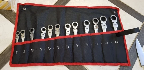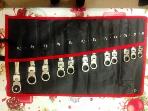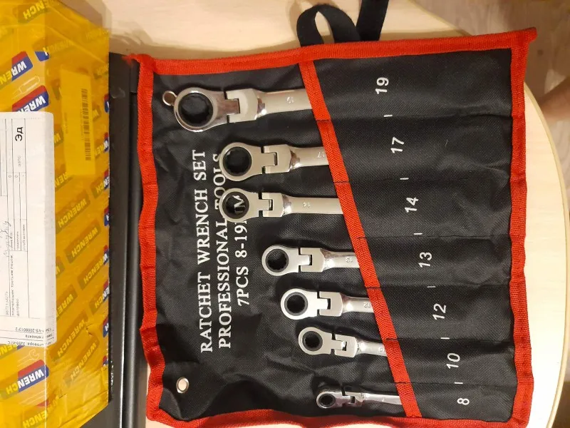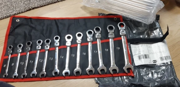 Приехали в Рязань за пару дней, доставка была из РФ. В целом ключи неплохие, попробовал 17 и 19 рожком пару сильно затянутых гаек - открутил, ничего не разогнулось и не отломилось. По тактильным ощущениям конечно не ликота, но и не откровенный дешман типа сибртеха. Но, за такие деньги (покупал за 2600 12 ключей) в России даже самый дешман с карданом не купить! Есть и пара косяков: во первых люверсы практически не держатся в тряпке, во вторых у ключей на 12/13/14 не соразмерно тугая трещетка на сброс, даже у 19 ключа трещетка сбрасывает легче, это конечно не очень хорошо, возникают сомнения по поводу долговечности механизма. В целом для гаража и мелкого ремонта авто своими силами набор отличный и думаю прослужит долгие годы.