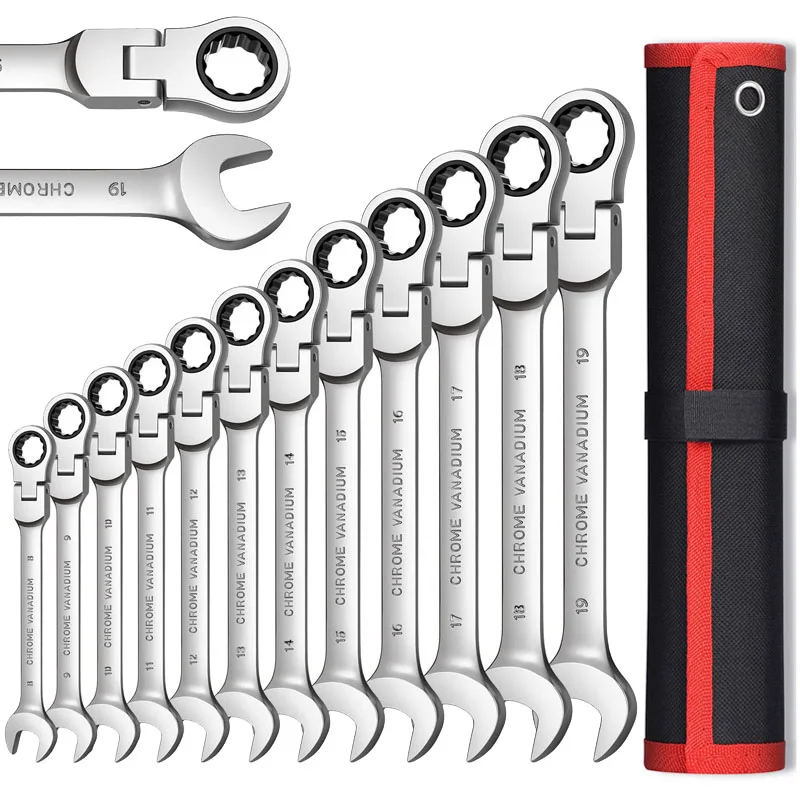 Набор гаечных ключей с гибкой головкой и трещоткой, комбинированный аксессуар, ручные инструменты из хромованадиевой стали, Набор торцевых ключей