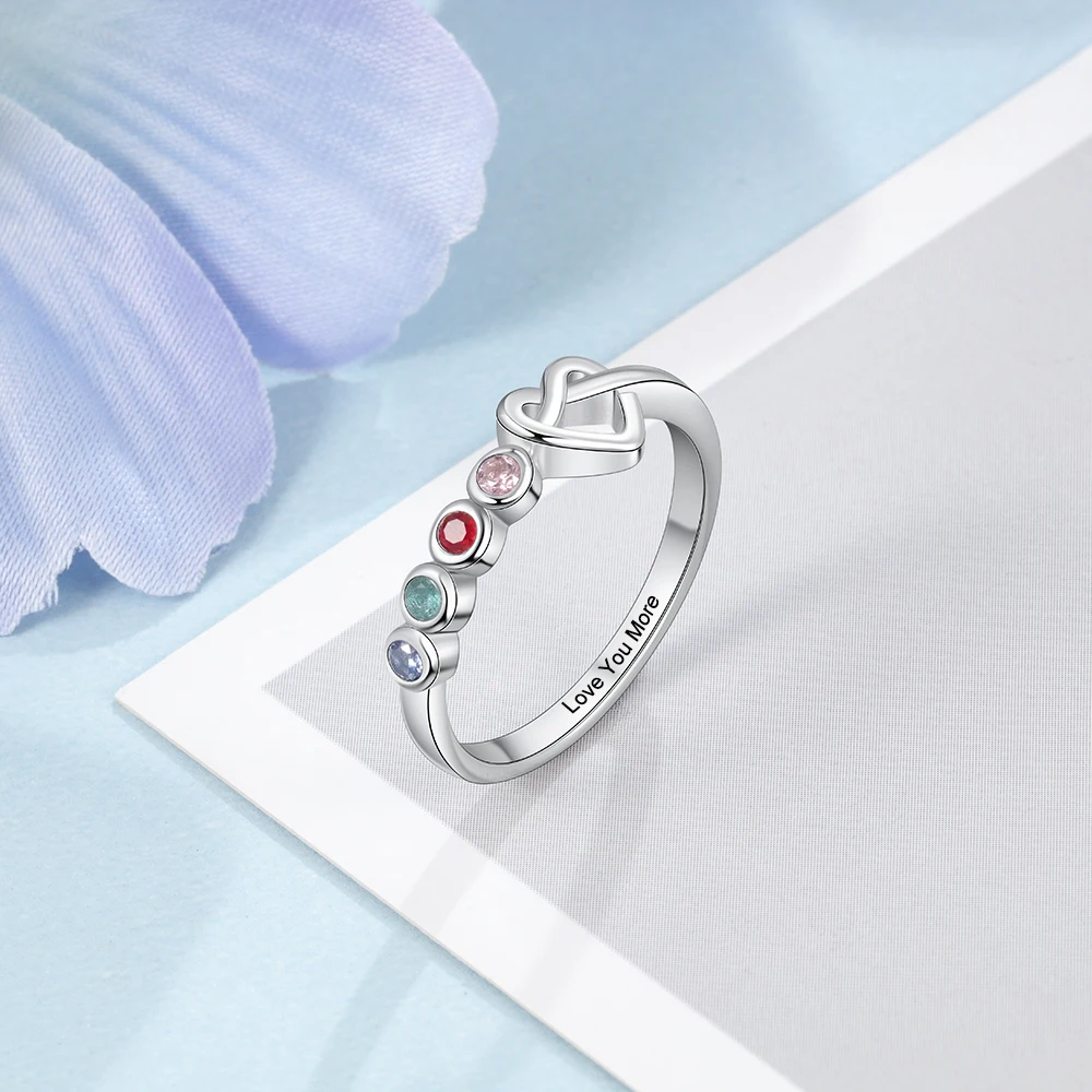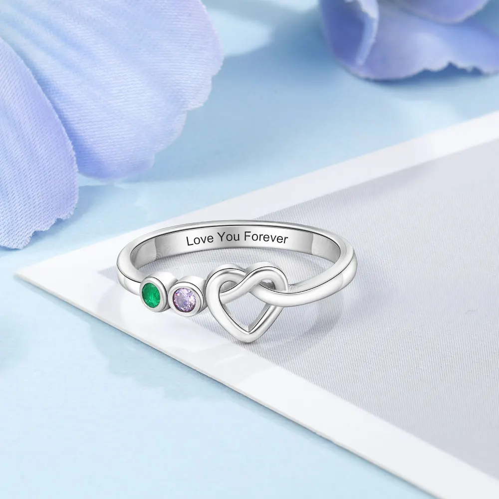 JewelOra персонализированные гравировка сердце узел кольца для Для женщин по индивидуальному заказу от 2 до 4 лет камнях палец кольцо, рождественские подарки для матери
