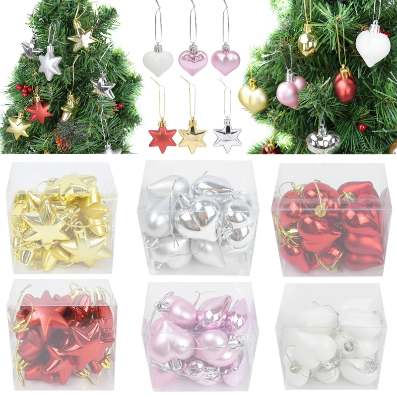 12 шт., Рождественский шар, Рождественская елка, подвесной декор, звезда, сердце, форма, красочный шар, подвеска, безделушка для нового года, украшение для рождественской вечеринки