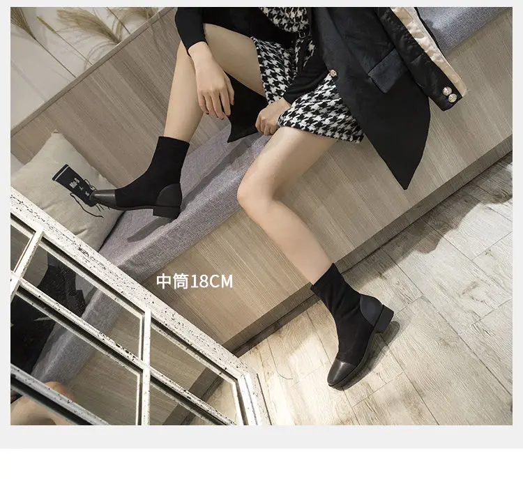 Короткие ботинки, новинка зима 2020, женская обувь, весенние и осенние одноботинки, ботинки на плоской подошве, ботинки-носки, Универсальная кожаная обувь