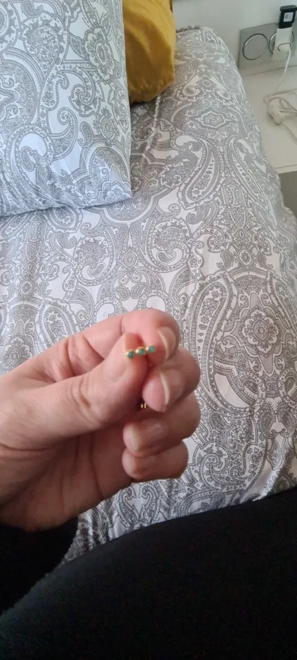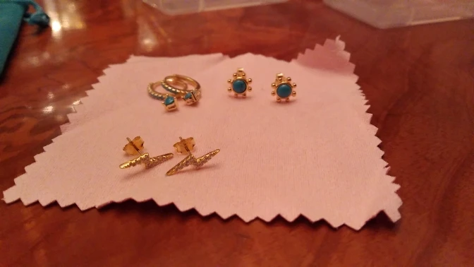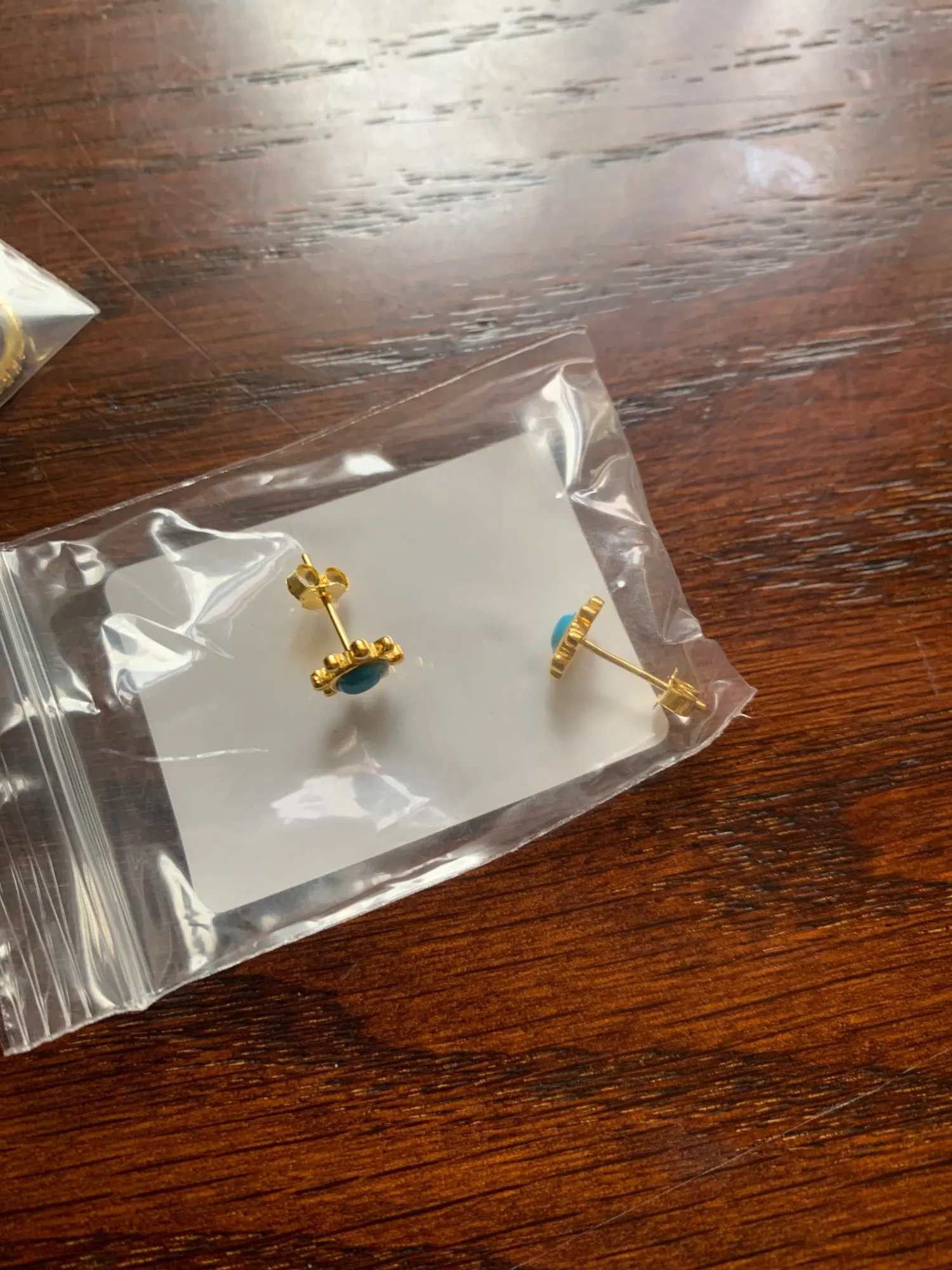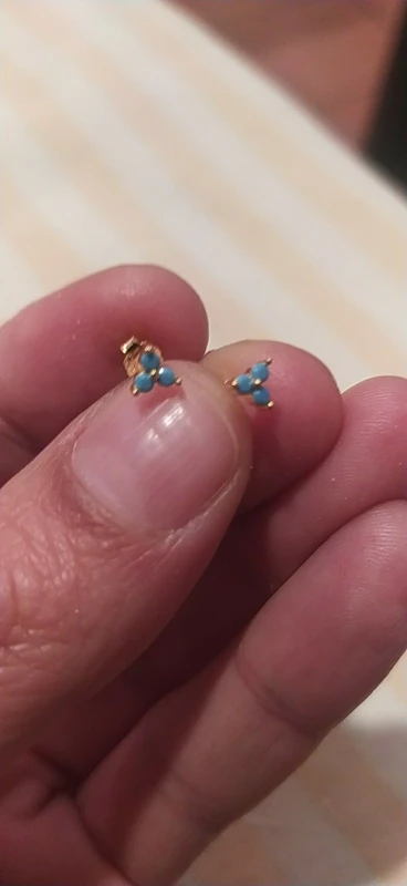 Woooo красивые, маленькие. Очень модный, остается очень приклеенным к уху, и синий цвет бирюзовый, как будто он был естественным, материал на данный момент остается неповрежденным, очень хороший