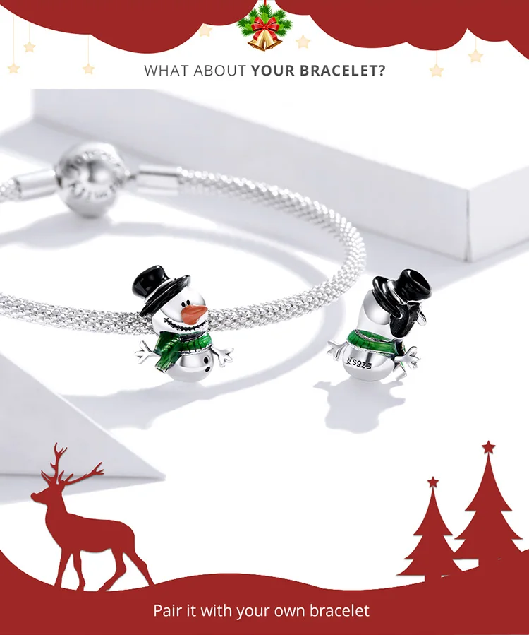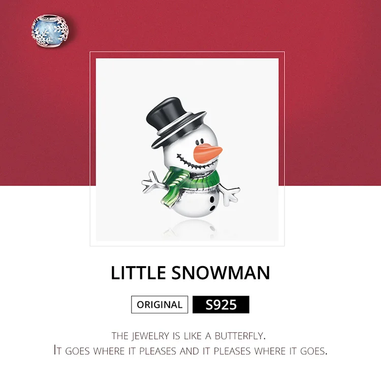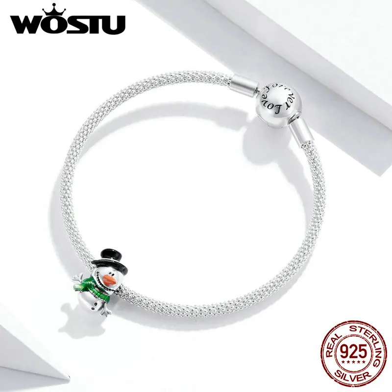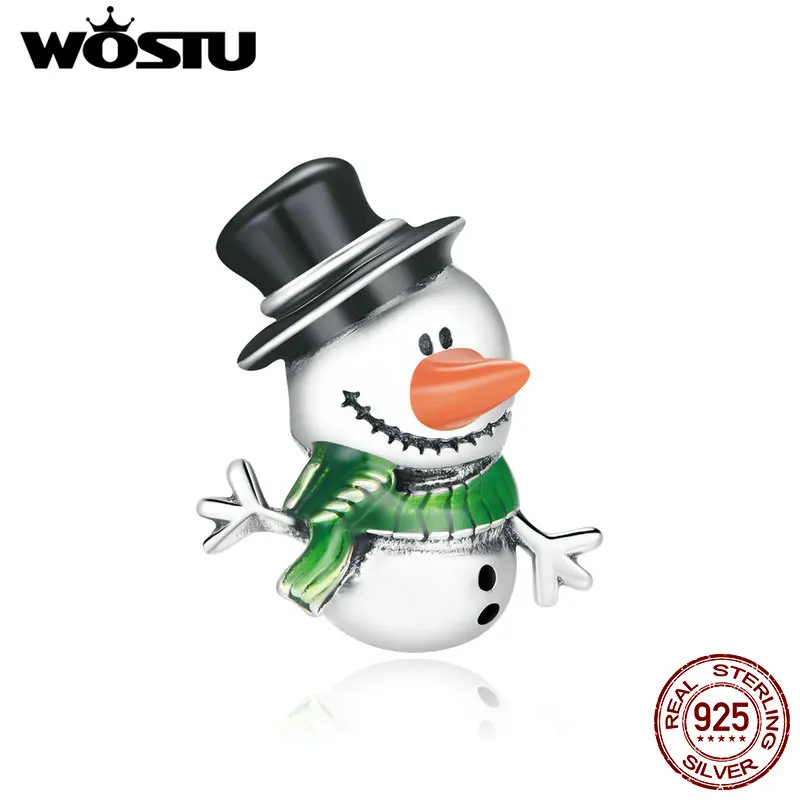 WOSTU 925 Стерлинговое Серебро Снеговик очарование зимних бусин под...