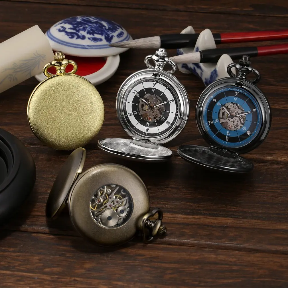 KS старинный китайский дизайн на 12 часов, Серебряный чехол в стиле стимпанк, брелок, цепочка для ключей, ручная работа, Механические карманные часы, подарок/KSP086
