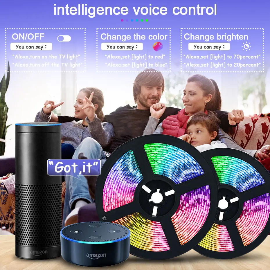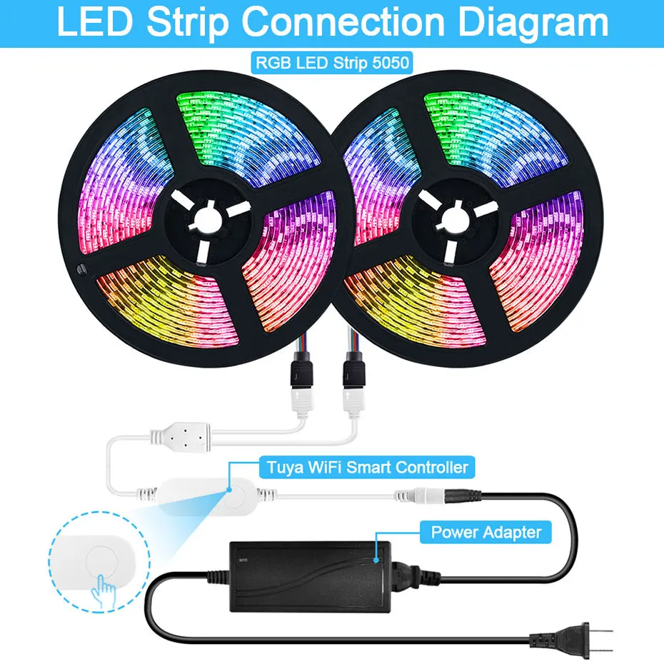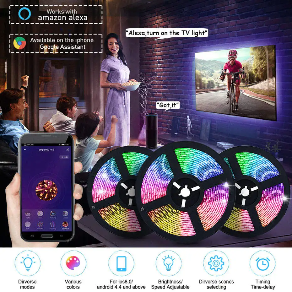 Спецификация: SMD 5050 Светодиодная лента Размеры: 5050: 500 см x 1 см Цвет излучения: RGB (включая белый) Степень защиты: IP20/IP65 (не водонепроницаемый/водонепроницаемый) Рабочее напряжение: 24 В постоянного тока Количество СВЕТОДИОДНЫЙ: 60 светодиодный s/m, 5 метров/катушка Угол обзора: 120 ° - 140 ° Рабочая температура: от-20 до 50 ° Умный Wifi контроллер Tuya Входное напряжение: 5 в пост. Тока ~ 24 В Размер: 65x25x12 мм Сеть: 2,4 ГГц Wi-Fi Загрузка приложения: Smart Life/TUYA Smart Поддержка мобильных устройств: Android/IOS Цвет регулируется: RGB Функция: Голосовое управление, дистанционное управление с помощью приложения, регулировка яркости, Совместимость с Amazon Alexa Echo Google Home Assistant, IFTTT 【Голосовое управление через Alexa и Google assistant】светодиодные полосы освобождает ваши руки и не нужно двигаться. Используйте простые пусковые устройства для включения и выключения ламп и установите цвета, чтобы сделать их ярче или затемненным. В настоящее время совместим с Echo и Google Home. 【Управление по Wi-Fi через приложение "Smart Life" может контролировать светодиодный светильник s для достижения эффекта, которого может достичь весь светильник (включение/выключение/изменение цвета и яркости). С помощью мобильного приложения вы можете выбрать все цвета. Посылка включает в себя: Только 5050 Светодиодная лента (24 В): Светодиодная лента 5050 5 м/катушка 1 шт. 5 м набор светодиодных лент (24 В): Светодиодная лента 5050 5 м/катушка 1 шт. 1 умный контроллер Tuya Wifi 1 x адаптер питания EU/US/AU/UK 10 м Светодиодная лента-2 катушки 5 м набор светодиодных лент (24 В): 2x5 м/катушка 5050 Светодиодная лента 1 умный контроллер Tuya Wifi 1 x адаптер питания EU/US/AU/UK 20 м Светодиодная лента-4 катушки 5 м набор светодиодных лент (24 В): Светодиодная лента 5050 4x5 м/катушка 1 умный контроллер Tuya Wifi 1 x адаптер питания EU/US/AU/UK 30 м Светодиодная лента-6 катушек 5 м набор светодиодных лент (24 В): Светодиодная лента 5050 6x5 м/катушка 1 умный контроллер Tuya Wifi 1 x адаптер питания EU/US/AU/UK