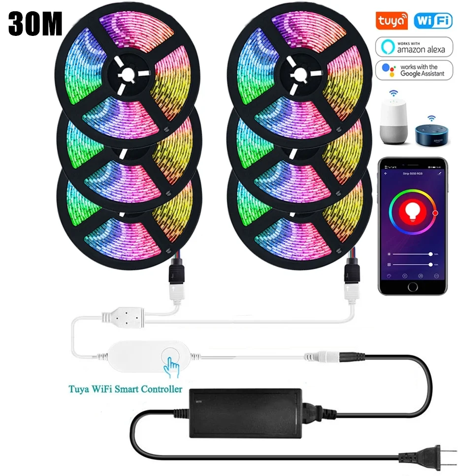 Tuya Smart WiFi светодиодный светильник, RGB 5050, работает с Alexa Google Home, голосовое управление, светодиодный светильник s, 10 м, 20 м, 30 м, 24 В, 60 светодиодов/м