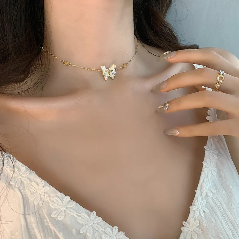 Европейская и американская темпераментная Дамская короткая цепочка с бабочкой дизайнерская Роскошная цепочка до ключиц цепочка на Хэллоуин для женщин цепочка