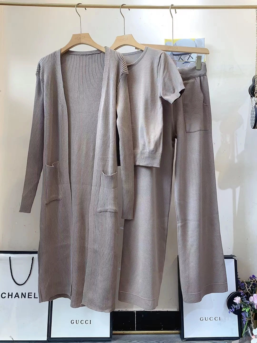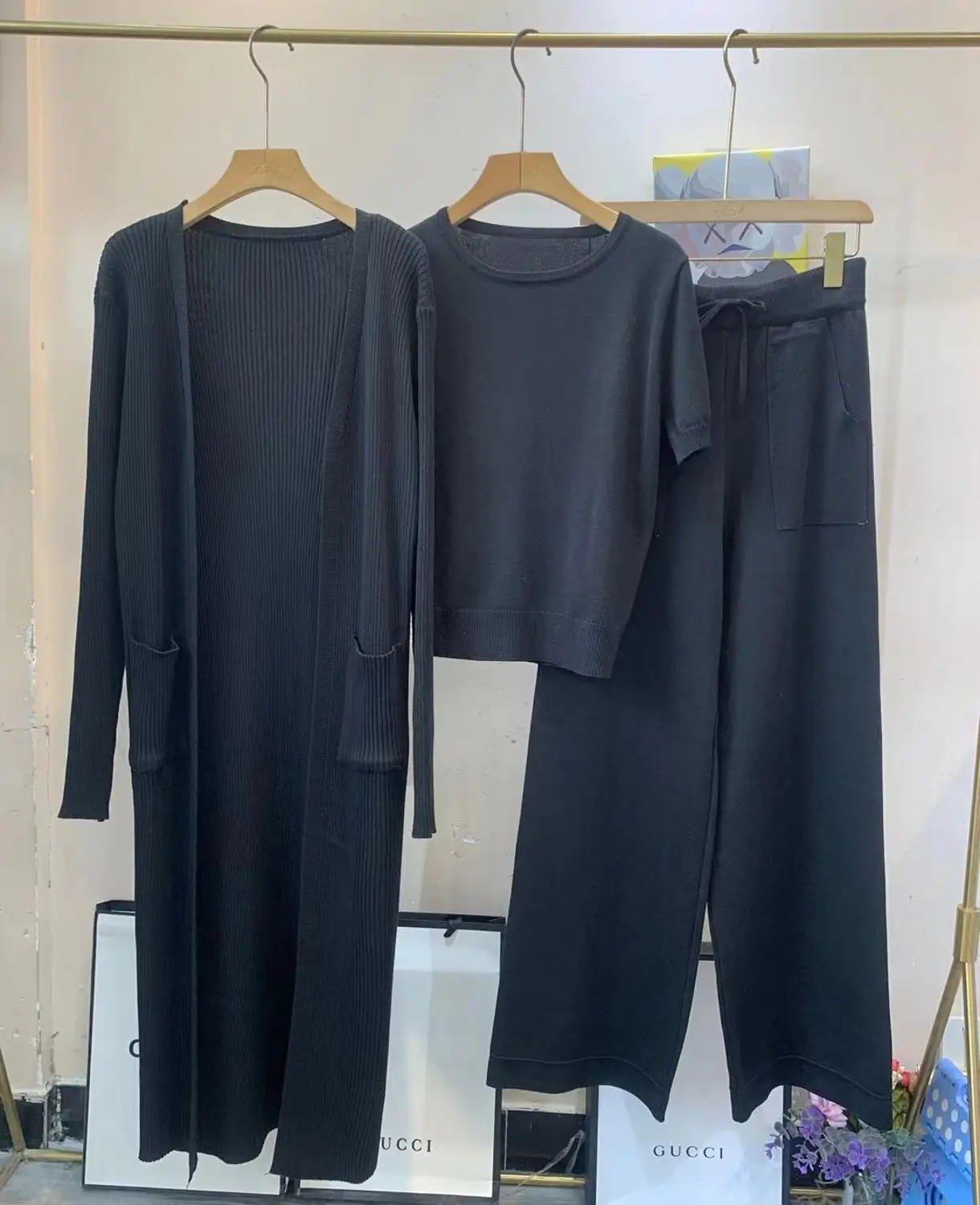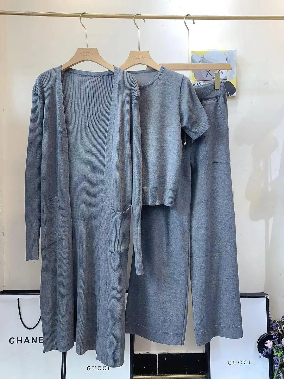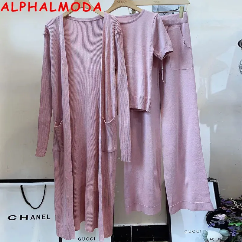 Женский трикотажный костюм ALPHALMODA, свитер с коротким рукавом + длинный кардиган + прямые брюки, комплект из 3 предметов